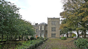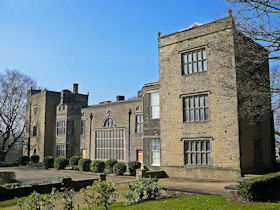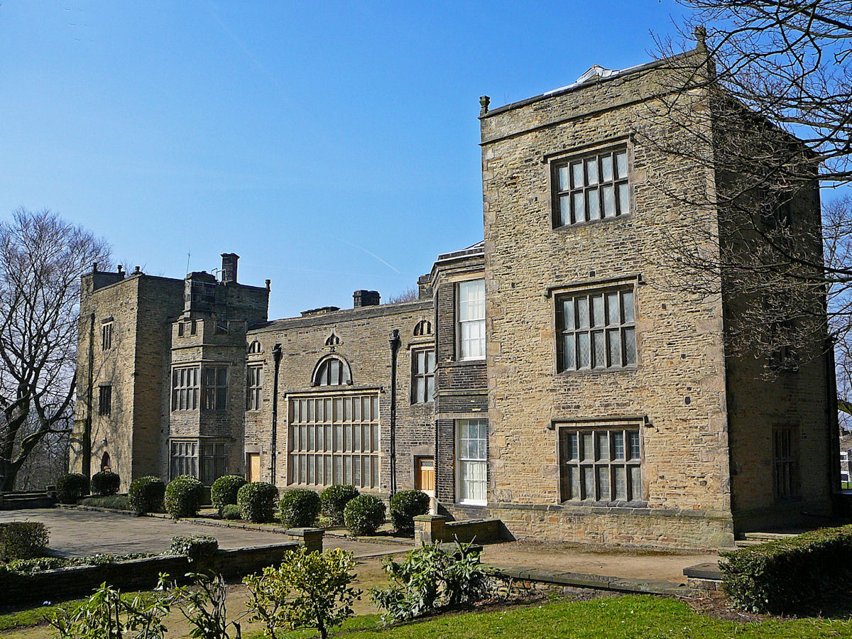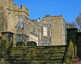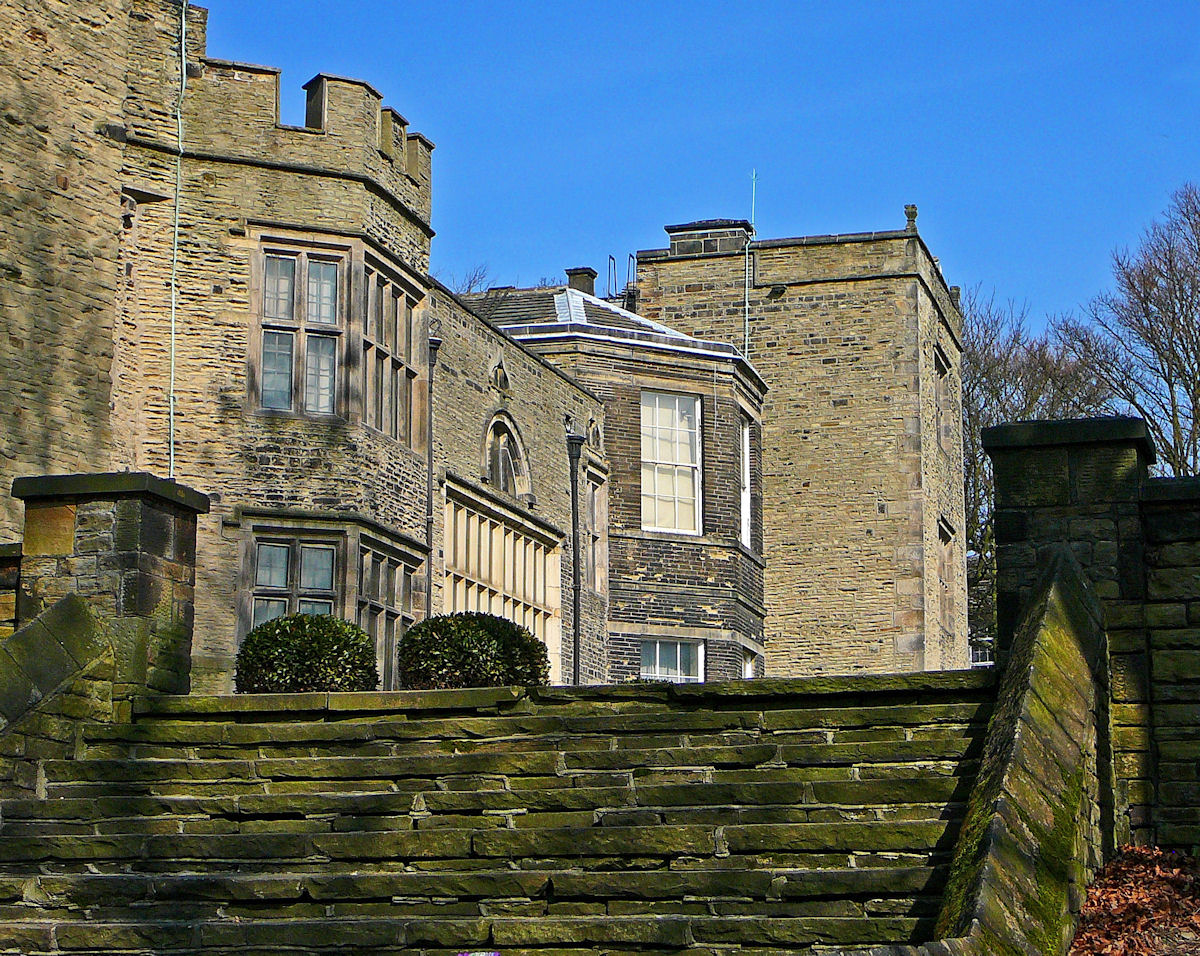 A large hall, the most substantial surviving in Bradford. It' is also the earliest in structural origin being an enlargement on the basis of 2 medieval probably C14 towers. Sandstone and gritstone rubble. The towers with parapet copings and stone slate roofs. The main south front between the towers is mid C17, circa 1660 and has a remarkable variety of fenestration and motifes: cross mullioned windows, semi-circular and circular mullioned windows, 2 canted bays through 2-storeys of 8 lights and a vast hall window of 5 plus 5 lights with 2 transoms. Rising from the lintel of the hall window is a 3 light semi-circular window and 3 light ogee window, above this there is also a Victorian canted bay window next to the right hand tower. The rear elevation has projecting wings, the west one is the only ashlar faced part of the hall and has plain mullioned windows but there is a probably reset medieval window of 3 ogee headed lights on the top floor. The east wing has mullioned and transomed windows. Inside the hall has an C18 ceiling and a gallery to the rear. One room on the first floor retains lively original plasterwork consisting of broad bands foliage and birds contained between them. (Listed Building Report)