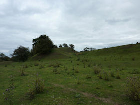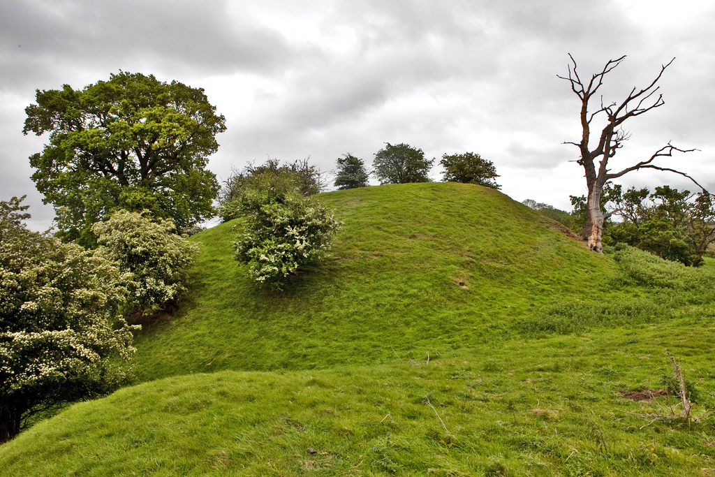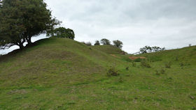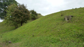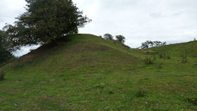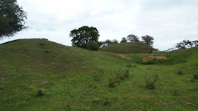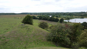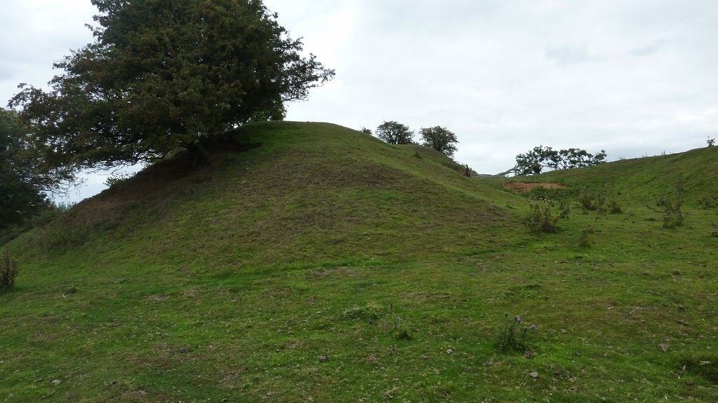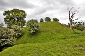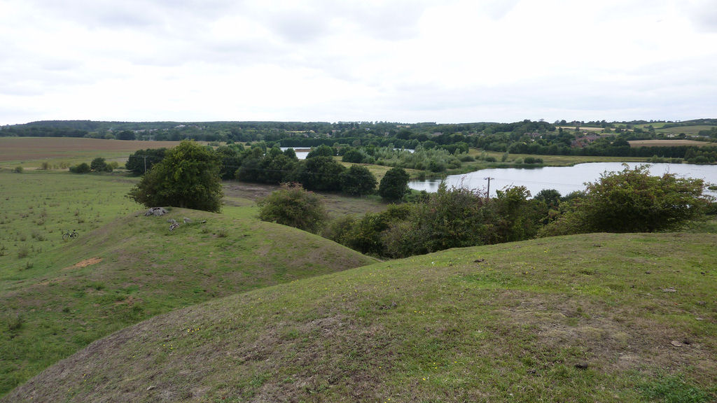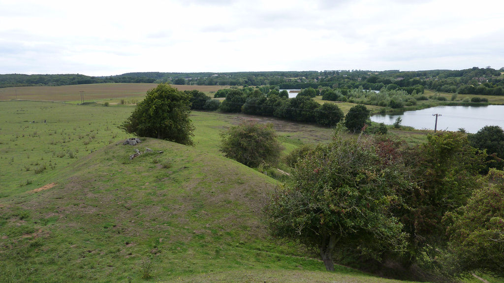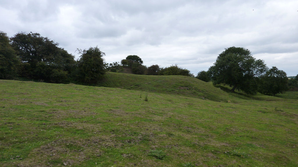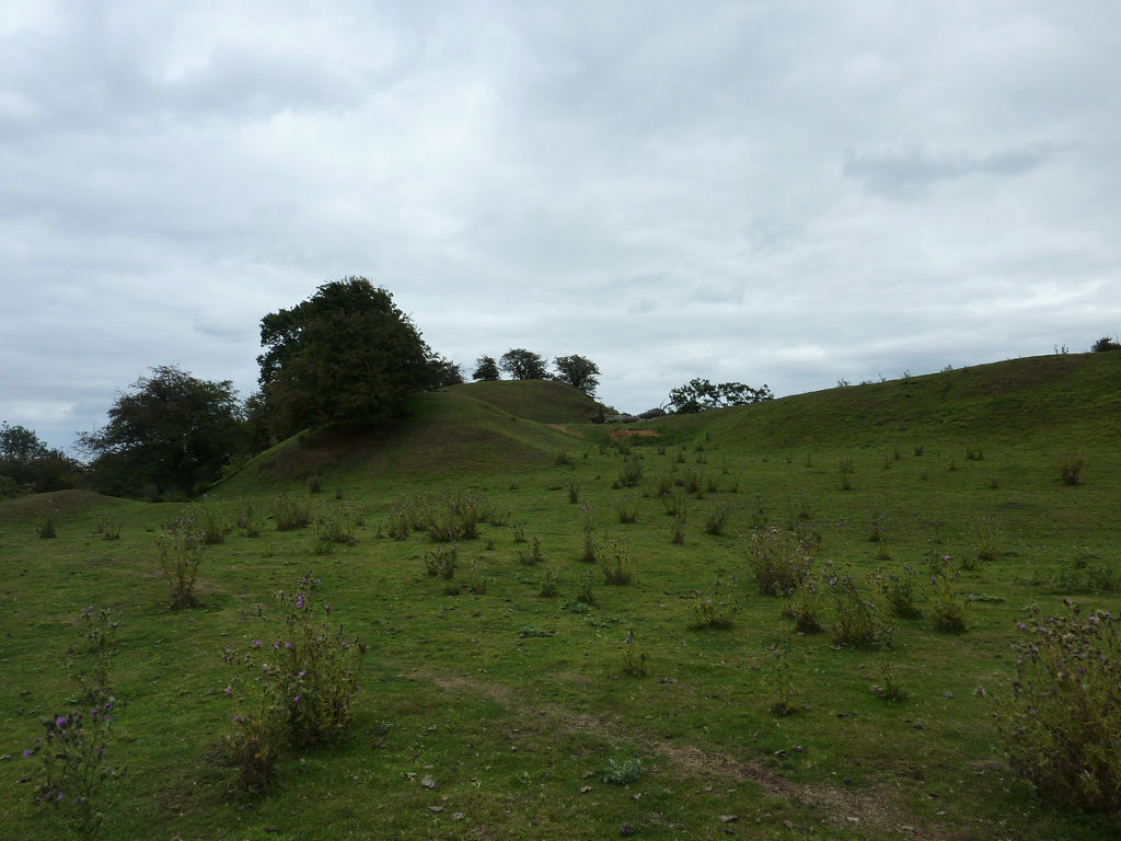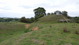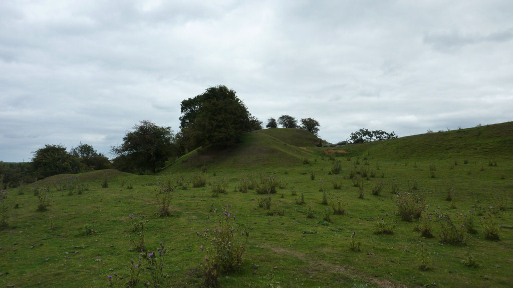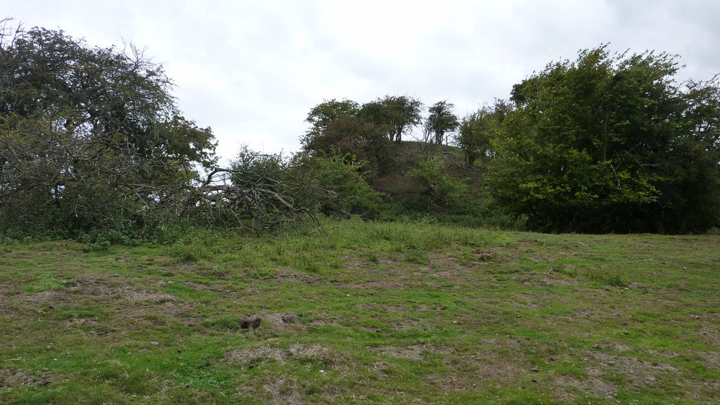 Motte and bailey complex. The motte incorporates a natural sandstone outcrop standing 11m above the floodplain. It is 60m wide at the base and the flat top is 10m in diameter. Three irregularly shaped baileys are separated from the motte by a ditch. Cainhoe was the centre of the Barony of Cainhoe, held by the d'Aubigny family from the Conquest until the mid C13. No castle is mentioned in 1272 when the male line had been extinguished and the estate divided. By 1374, the fortifications were ruinous. (PastScape)