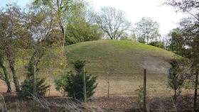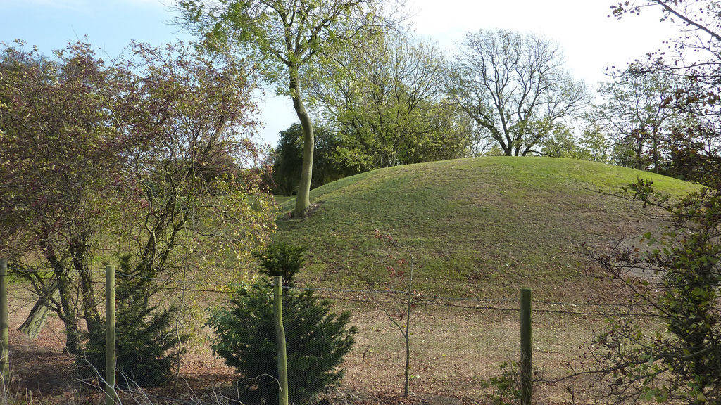 Motte measuring circa 25.0m by 30.0m, with baileys of irreuglar shape. The surrounding ditches are dry and there appears to be the remains of a contemporary sluice ditch on the North-East side. The motte and bailey are surrounded by the bank and ditch of an outer entrenchment in the form of a rough square enclosing about 30 acres. The whole site is largely devoid of habitation, and this outer enclosure is probably comtemporary with the motte and bailey. This motte may have been one of those besieged by King Stephen in 1138. (PastScape)