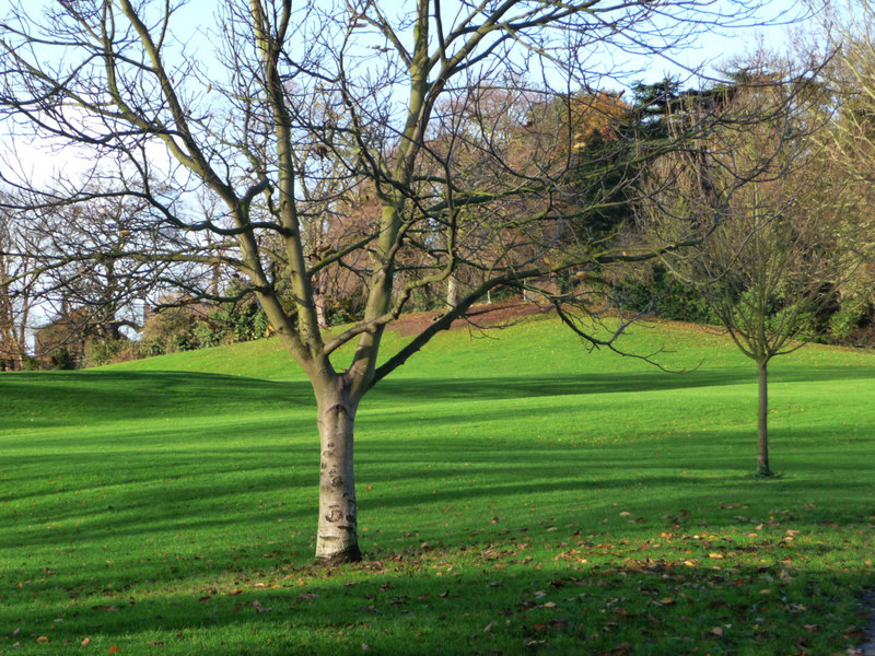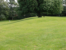 Ely Castle, or Cherry Hill Castle, a motte and bailey built by William I in 1070 to subdue Ely. Once Ely was quiessent, the motte was abandoned. However it was refortified in 1140 and immediately captured by King Stephen, and was captured by Geoffrey de Mandeville in 1143. It lies on the south side of the Cathedral Park just inside 'Ely' Porta and close to the old tithe barn of the monastery. The motte is 40ft high with a basal diameter of 250ft and a summit diameter of 50ft. No ditch remains. The bailey consists of a four-sided enclosure on the south east of the motte, 300ft x 250ft. The surrounding bank is slight and there is no trace of an outer ditch. There is a gap in the north side where it should join the motte. (PastScape)