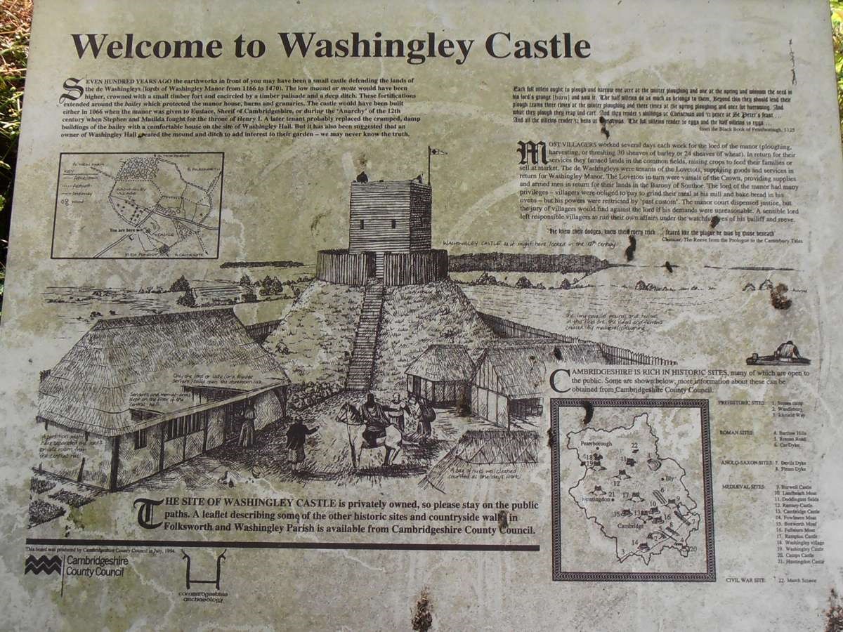 Small motte and bailey, formerly thought to be a moat, which forms part of Washingley deserted Mediaeval village. The motte is 2.6m high, and the bailey ditch has been mutilated by building and ploughing. (PastScape)