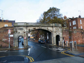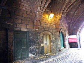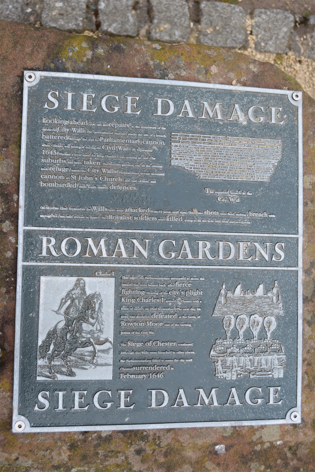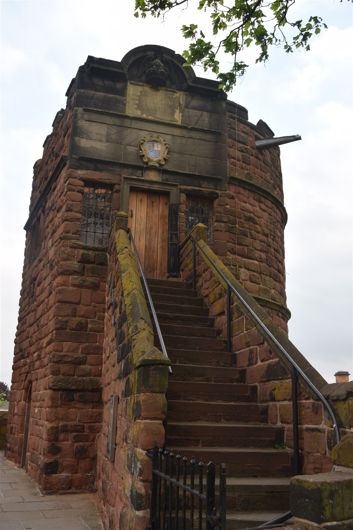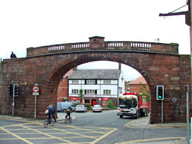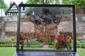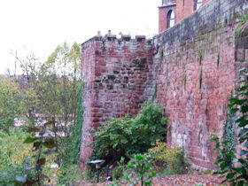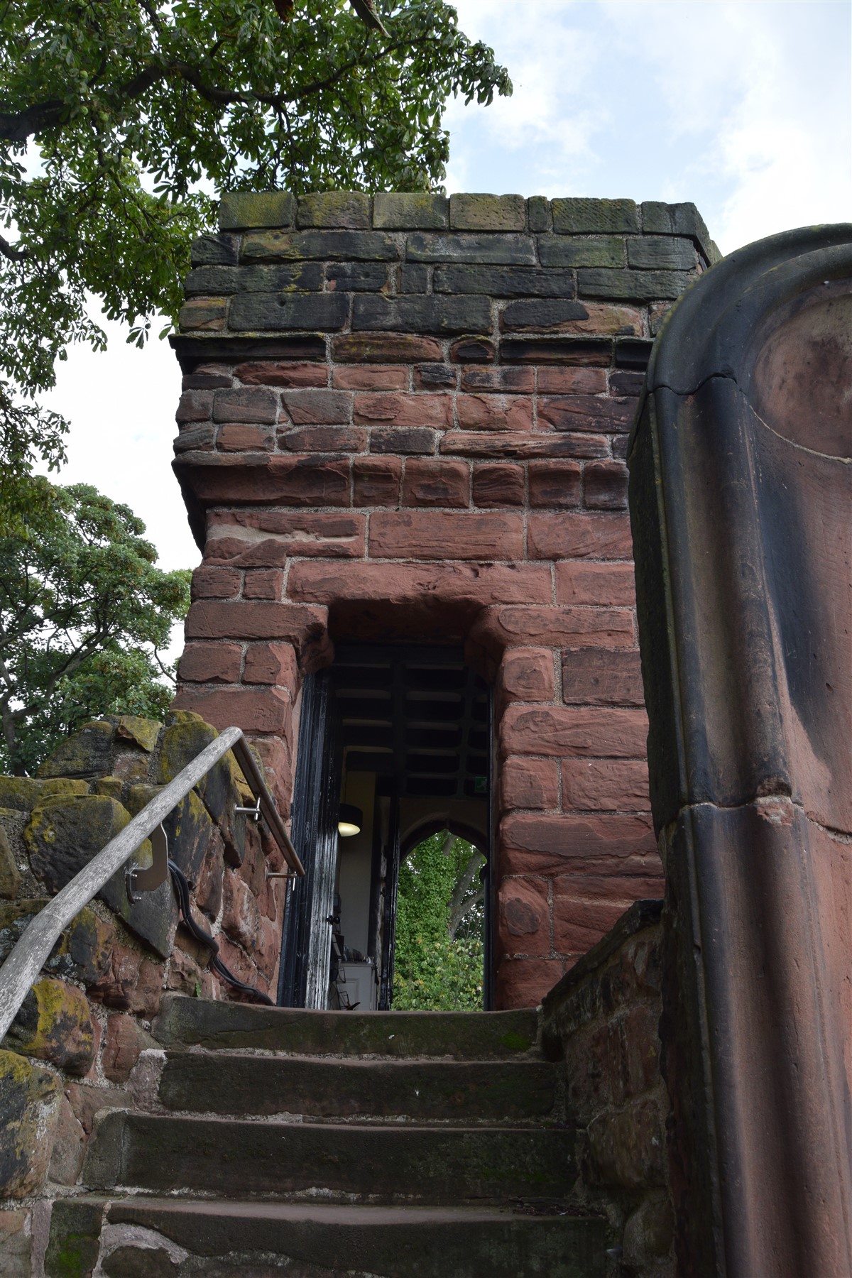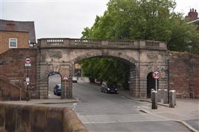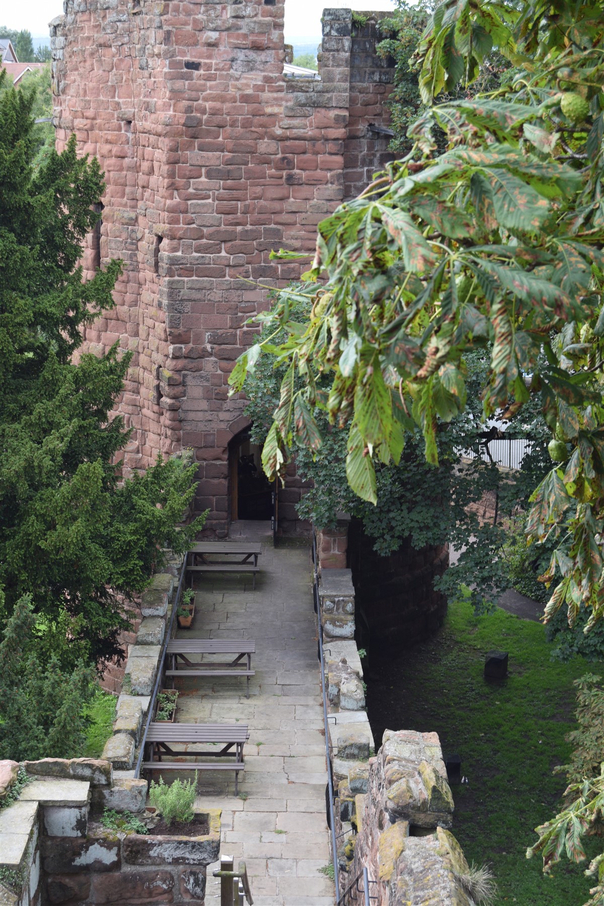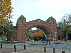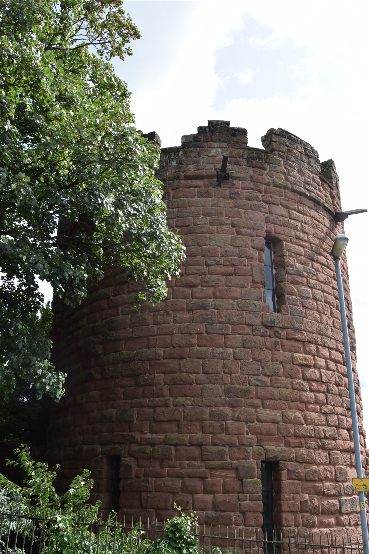 The present circuit of the City Walls is nearly two miles long and consists of four gates and several towers, all linked by a red sandstone wall. The north and east walls follow the original Roman foundations, which still remain in some cases, but the south and west walls were extended in the medieval period to include the castle to the south. The extension to the medieval walls must have taken place before 1121, as the Ship Gate is mentioned in the confirmation charter of St. Werburgh's Abbey. The present walls follow roughly the area of the medieval walled town, although most of the material above walk level is C18 or C19. The wall was probably originally defended by battlements to the outside, while the interior was protected by timber rails mounted on stone projections, which can still be seen at the Kaleyard gate. The north and east sides of the city wall were also protected by a ditch, which ran from Pemberton's parlour to just beyond the Newgate. Beyond this stretch, the slope of the ground was relied upon for protection. The repair and upkeep of the walls was a costly business, and was paid for by 'murage', a toll upon certain goods entering the city. The damage caused by the Civil War swept away much of the medieval work, and the walls were repaired during the reign of Queen Anne. In the C17 and C18 the ditches were filled in and the walls repaired, the medieval gates being replaced. The walls continued to be rebuilt and repaired so that the wall-walk could be maintained as a promenade. Most of the walls visible above ground level today are C18 or C19. (Cheshire HER)