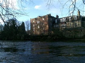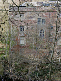 Fortified house and extension. Probably mid C15 with late C17 or early C18 alterations; late C18 extension with late C19 alterations. Extremely thick red sandstone block walls, the facade of dressed calciferous sandstone, all with cornice and solid parapet. Double-span hipped graduated greenslate roof within parapet; banded red sandstone chimney stacks. Extension of dressed calciferous sandstone walls under Mansard tile roof with banded calciferous sandstone ashlar chimney stack. 2½ storeys over basement, 5 bays, with 2½-storey, 5-bay, left extension. Broad stone steps to central panelled and glazed door in quoined surround under keyed lintel with plain frieze and cornice. Later coat-of-arms of the Milbourne family over the entrance. Late C19 leaded casement windows in original stone surrounds; smaller attic sash windows with glazing bars in original stone surrounds. Straight joint in right return wall; the original medieval quoin stones with various masons' marks, suggest that the front of the house has been moved forward, but this is not altogether borne out by the thickness of the front basement wall. Windows similar to facade. Extension is of 2 builds, the right 3 bays earlier. Central stone steps to C20 door and overlight in stone surround. Casement windows in stone surrounds, and gabled attic dormer windows. Rear fenestration of 4 periods: blocked small chamfered-surround medieval windows; 2-light stone-mullioned windows with mullions removed; large C18 sash windows with glazing bars, and round-headed staircase windows, all in stone surrounds; some C20 windows in cement surrounds and plain reveals. Left return wall has small chamfered-surround medieval window, beside which is an C18 sash window in stone surround under a medieval relieving arch. Interior: no medieval features visible, apart from the splays of some windows, with masons' marks, and mural recesses thought to be the remains of newel staircases