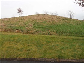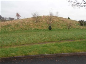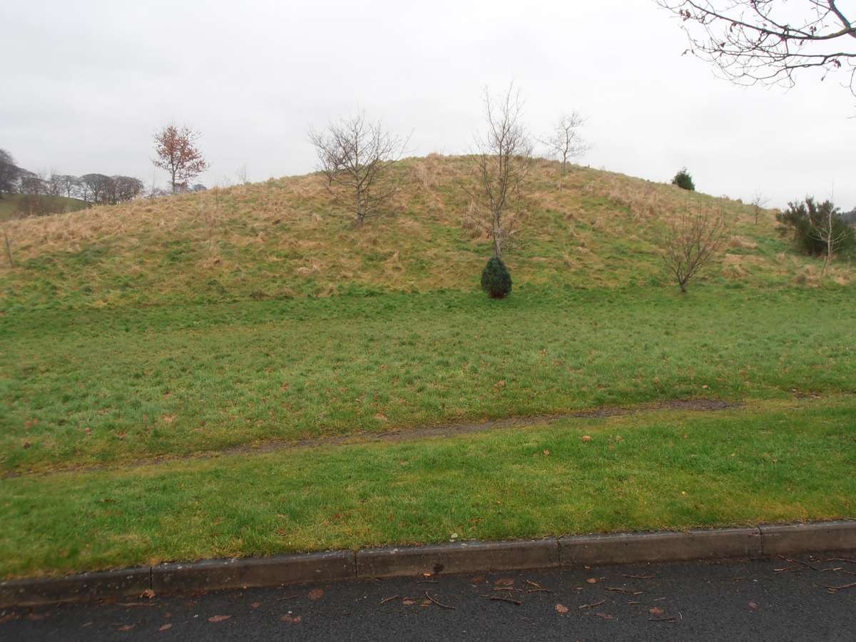A Medieval motte survives as an oval earthwork, although it may have been modified in the 19th Century. The motte is dated to the 12th or 13th Century and is cut out of the higher end of a long ridge. It comprises an oval-shaped summit plateau measuring circa 36m by 18m; 12m downslope there is an encircling ditch circa 5m wide and up to 3m deep. The site was used as a beacon in 1468 and a statue to the 7th Earl of Carlisle was erected on the summit in the 19th Century, at which time the mound may have been further landscaped. (PastScape)