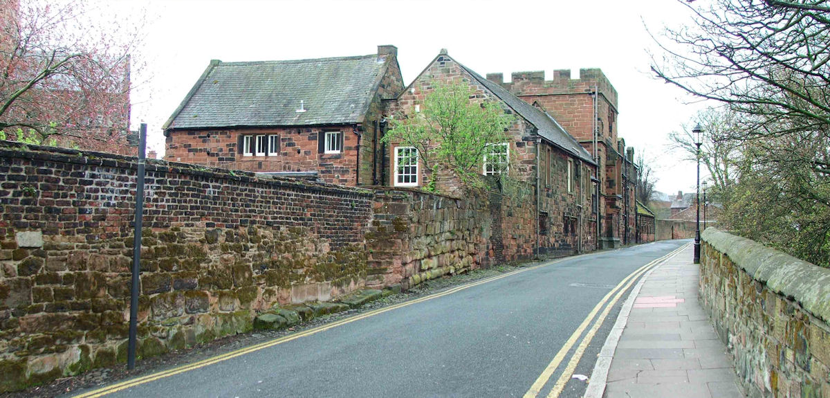 (A) Extending southwards from the south west corner of the Castle curtain wall, almost to Annetwell. Grade 1.