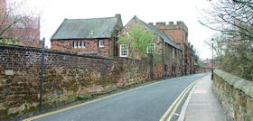 Remains of City Walls at West Walls. Grade I. Part of the City Walls begun in C11, strenghtened and rebuilt in succeeding centuries, often breached or destroyed. This portion extends from Heads Lane northwards to the railway bridge, broken by the Elim Gospel Hall and adjacent buildings (Listed Building Report).