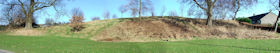 Round Hill, Hallgarth. A clearly man-adapted mound with steep sides and a level summit, identified as a possible burh of the pre-Conquest territorial unit of Stirkland. (PastScape–ref. Higham)