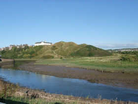 The monument includes the earthworks and buried remains of Castle Hill motte, a 12th century medieval castle, together with the foundations of a World War II gun emplacement located on the summit of the motte. The motte is strategically situated at the end of a ridge overlooking a horseshoe bend in the River Ellen close to the river's mouth, and overlooks the point where an earlier Roman road crossed the river. The motte is surrounded by a ditch on all sides except the west where defence is afforded by the steeply sloping hillside. On the summit of the motte there are the concrete foundations of a World War II gun emplacement which guarded the approaches to Maryport harbour. (Scheduling Report)