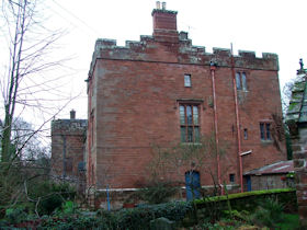 House incorporating medieval tower house. C14 for the Priory of St Mary's, Carlisle, with c1690 facade and early C19 additions. Red sandstone ashlar walls with white freestone dressings, graduated slate roof and 4 ashlar ridge chimney stacks, 2½ storeys, 7 bays: large rectangular tower approximately 8.3 metres wide by 19.5 metres long with walls 2 metres thick, encased entirely within the later house, but front wall for full length and one and a half storeys high, is original building. Entrance has freestone moulded surround, with moulded entablature, swan neck pediment and scrolled console brackets. Ground floor tripartite windows, with red sandstone moulded surrounds, swan neck pediments and scrolled console brackets on pilaster strips, probably date from early C19. String course to first floor and raised panel joining central upstairs window to entrance: first floor windows with c1690 freestone moulded surrounds, central window with scrolled console brackets. Raised quoins to first floor, chamfered plinth course of original tower can also be seen on side wall and internally, now forming dividing wall between rooms. Moulded cornice, prominent cast-iron gutter, one gable with plain coping the other crow-stepped with pinnacles to front and back: chimney stacks have drip moulds and cornice. Sash windows with glazing bars and oak iron-studded door with leaded fanlight. 2 extensions of 2 storeys, 2 bays, to left, of coursed sandstone rubble, have plain surrounds to entrances and windows: slate roof and brick chimney stacks, early C19 sash windows with glazing bars, plank doors. Facade has terrace wall of 3 courses of red sandstone ashlar, with steps to entrance. Internal features include vaulted 2-chamber cellar, beneath entrance hall: medieval barrel vaulting to entrance hall, with oval early C19 staircase and rib-vaulted plasterwork to ceiling and staircase arch