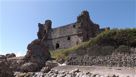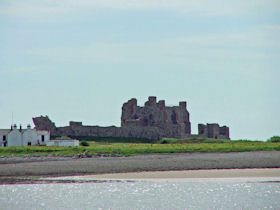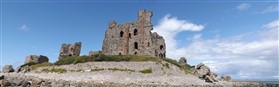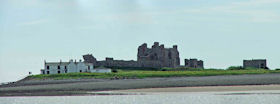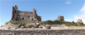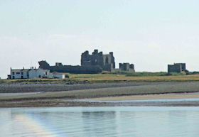 The monument is Piel Castle, located at the southern end of Piel Island between Walney Island and the mainland. The castle is built of roughly coursed stone collected from the beach, with its architectural features constructed of red sandstone ashlar quarried in the vicinity of Furness Abbey. The castle guarded the main approaches to the deep-water harbour outside Barrow and includes a keep, gatehouse, inner and outer baileys, inner and outer moat, curtain walls and towers. The keep is extremely unusual, comprising three parallel compartments though the easternmost of these has fallen into the sea and its walls now lie on the beach. It lay within an inner ward, the south and east walls of which have also been eroded by the sea. There are towers at the south-west, north-west and north-east corners of the inner ward, the latter projecting north of the inner curtain wall. Access to the inner ward is by a gatehouse in the west curtain wall. A dry moat some 10m wide by 2.5m deep flanks the north and west sides of the inner curtain. Access from the outer ward to the gatehouse is now by a causeway but was originally provided by a drawbridge. The outer curtain wall survives best close to the north-east corner. On the western and north-western sides the wall does not survive above foundation level, while remains of its southern side lie tumbled on the beach. There are towers at the south-west, north-west and north-east corners. The former has short lengths of curtain wall attached and both this and the north-east tower project slightly beyond the wall. Flanking the north and west sides of the outer curtain is a dry moat up to 13m wide by 3m deep. Within the outer ward, adjacent to the north-east tower, is the foundation of a single freestanding building measuring some 10m by 6m traditionally referred to as the chapel. Its original function, however, is unclear. The original stronghold was erected for the monks of Furness Abbey in King Stephen's reign (1135-54). The castle was besieged by Robert Bruce in 1316, 1317 and 1322. A licence to crenellate was granted in 1327 and construction of the present castle is attributed to Abbot John Cockerham at about this time. In 1403 Abbot John de Bolton is said to have found the cost of the castle's upkeep beyond his means. About 1429 the castle was repaired and restored. In 1487 Lambert Simnel was proclaimed king here by his mercenary troops. The castle had a short period of occupation and was ruinous by 1537. During the mid-19th century the Duke of Buccleuch undertook renovations to the monument including construction of sea defences which slowed the pace of erosion on the southern and eastern sides of the castle. The family gave the island, including the castle, to Barrow Corporation in 1918, and the monument was taken into the guardianship of the Secretary of State the following year. (Scheduling Report)