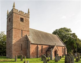 Church. Probably early C13 with tower of early C14 and restorations of 1827-28 and 1860-62. Large blocks of dressed red sandstone, probably from the nearby Roman Wall; graduated green slate roof with coped gables and cross finial. 3 storey square west tower, 5 bay nave/chancel. Fortified tower has walls 1.3 metres thick, with slit windows and chamfered plinth, rebuilt above string course before 1790, with battlemented parapet of 1827 and corner pinnacles of 1828: square bell chamber openings, existed before 1790. Nave/chancel has buttressed walls with pointed lancets. Recessed C19 east window, suggests an infilled arch of the demolished chancel. C19 porch and vestry cover original north and south entrances: porch has stone slate roof with coped gable and cross finials: original entrance has round arch with 2 continuous chamfers and hood mould projecting to either side of porch. Interior: C19 vaulted pine ceiling. C19 pews have panels of carved Gothic tracery with lectern and pulpit of similar details. White marble wall plaques to members of the Fawcett and Farrer families of Scaleby Castle and Scaleby Hall, all early C19. 3 early C20 stained glass windows. Bowl and stem font is dated 1707 with inscription MH, NB, WB, CG, CHURCH WARDENS. Free standing inscribed Roman Altar, probably from Birdoswald, has been reused in C14 with carvings on back and side of clerics (heads missing). Interior of round arch east entrance to tower has draw-bar hole. There is a bench mark on the south-west corner of the tower. (Listed Building Report)