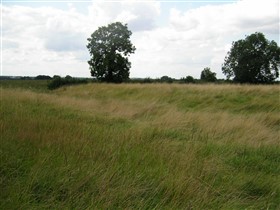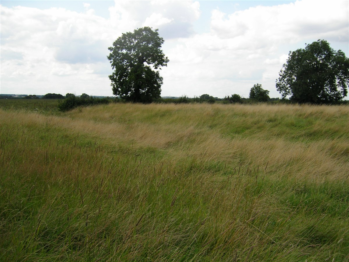 Moated site in excellent condition under pasture, but surrounded by ploughland. The field to the E is ridge and furrow. The moat itself is almost square, with an unploughed platform in the centre. This bears no visible sign of buildings, but that this was a habitation site is strongly suggested by a projection in the moat to the N which may have been a fishpond (Scheduling notice). Possible site of a fortified house documented in 1271 (King). The moat is sub-rectangular in form and comprises a broad ditch which is crossed by a causeway to the east. It measures approximately 56m by 50m. An irregular pond abuts the moat ditch to the north and may be a fishpond. (PastScape)