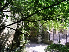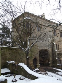 Manor house now 7 residences. C14 with C18 rear wing and garden front of 1787 said to be by William Lindley (previous list description); extensively restored 1894-1904. Ashlar and rubble limestone, stone slate roofs. Irregular L-shaped plan with roadside front having gatehouse on left and four 1st-floor windows on right; 9-bay garden front on right return; extended wing to rear of main range. Roadside front: 3 storeys. Gatehouse to left has 2 moulded plinth bands and offset buttresses flanking a moulded, Tudor-arched carriage entrance with a pointed-arched pedestrian entrance on its left; trefoil-headed single-light window above. Polygonal oriel window to top-left corner has cusped window to each face and dripmould extending to right above 2-light window with cusping and hood. Housepart to right has 2 more buttresses with, on left, 2 double-chamfered cross windows and similar 3-light window each with hoodmould; 1st-floor windows with trefoil-headed lights, similar 4-light window beyond buttress to right. 2 oversailing courses beneath total of 5 two-light windows with cusped, ogee lights and hoodmoulds linked by oriel dripmould, 2 windows have shields beneath the hood. Corniced parapet bears traces of earlier gables. Hipped roof with corniced ridge stacks, embattled turret set to rear. (Listed Building Report)
