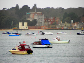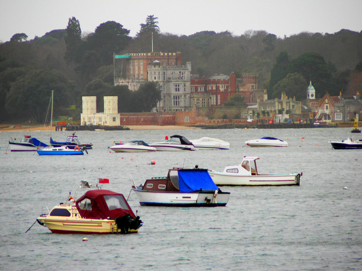 Brownsea Castle, now a country house, was rebuilt on the site of a small Henrician coastal artillery fort or blockhouse, built between 1545-47 by Henry VIII as part of his network of coastal defences to protect against French and Spanish invasion. The fort was refortified during the Civil War by the Parliamentarians and was then bought and converted into a country house in 1726. In the mid-19th century the house was remodelled and a new Tudor style facade, gatehouse and pier built. This was destroyed by fire and rebuilt in 1897. Any remains of the original castle are now in the basement of the house, though sections of the later house reflect its original structure. Although nothing remains on the surface of the original Henrician blockhouse, its physical aspect can be interpreted from a 1597 map of Poole Harbour. It consisted of a square single-storey stone building surrounded on three sides by a moat with a hexagonal gun platform on the seaward side which was enclosed by a low wall. (PastScape)