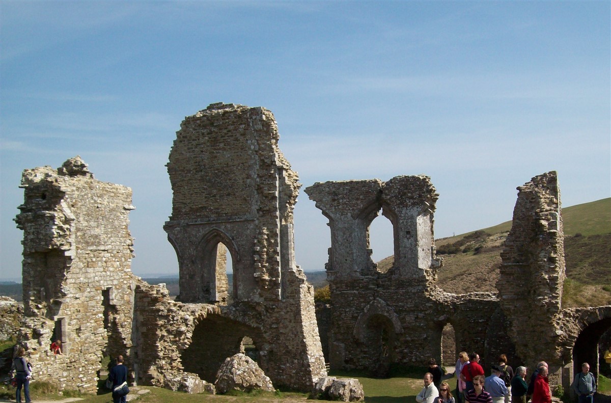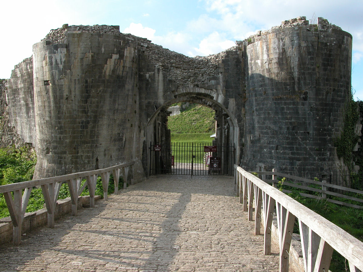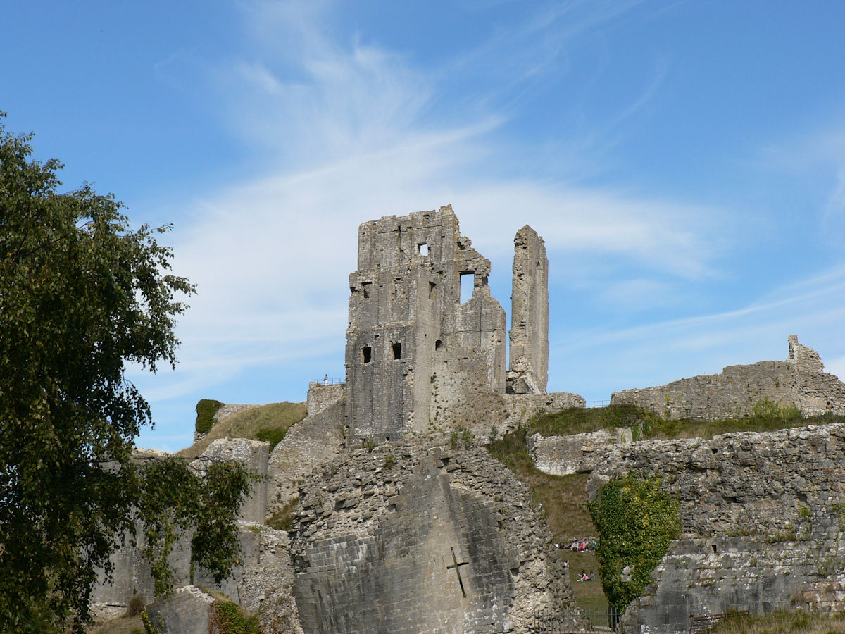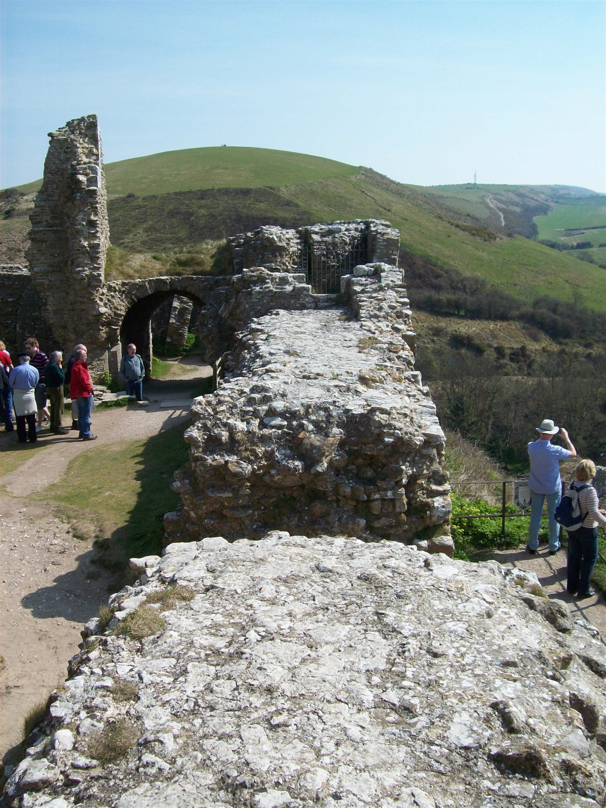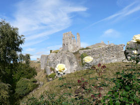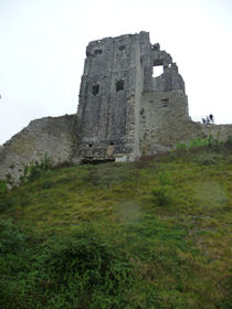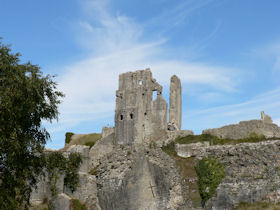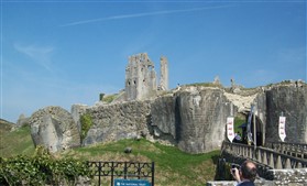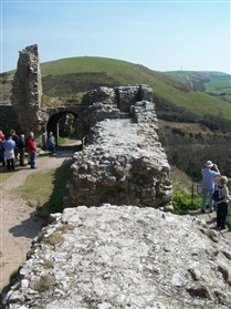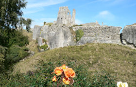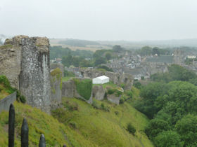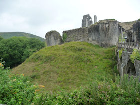 Corfe Castle, of strategic and military importance was built on a large natural mound overlooking the gap in the Purbeck Hills (RCHME). The foundations of a possible pre-Conquest building were revealed during excavations in the west bailey, 1950-52, and possibly represent either a 'hospitium' belonging to Shaftesbury Abbey or a royal residence associated with King Edward, who was murdered at 'Corfegeat' in 978 AD. (Penn). The earliest visible features of the castle, however, comprise late 11th century fragments of a hall in the west bailey and the wall surrounding the inner ward. The ashlar-built keep is dated to circa 1105 AD and the 'Gloriette' is an early 13th century courtyard mansion with 15th century addition, which was built to supplement or replace accomodation in the keep. The enciente (outer bailey) retains a defensive system of walls and mural towers mainly of the early and late 13th century. During the Civil War the castle was besieged and slighted. (RCHME). (PastScape)