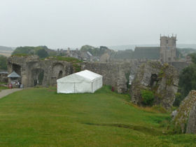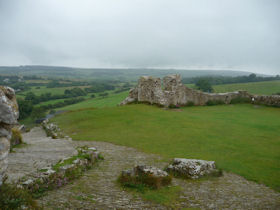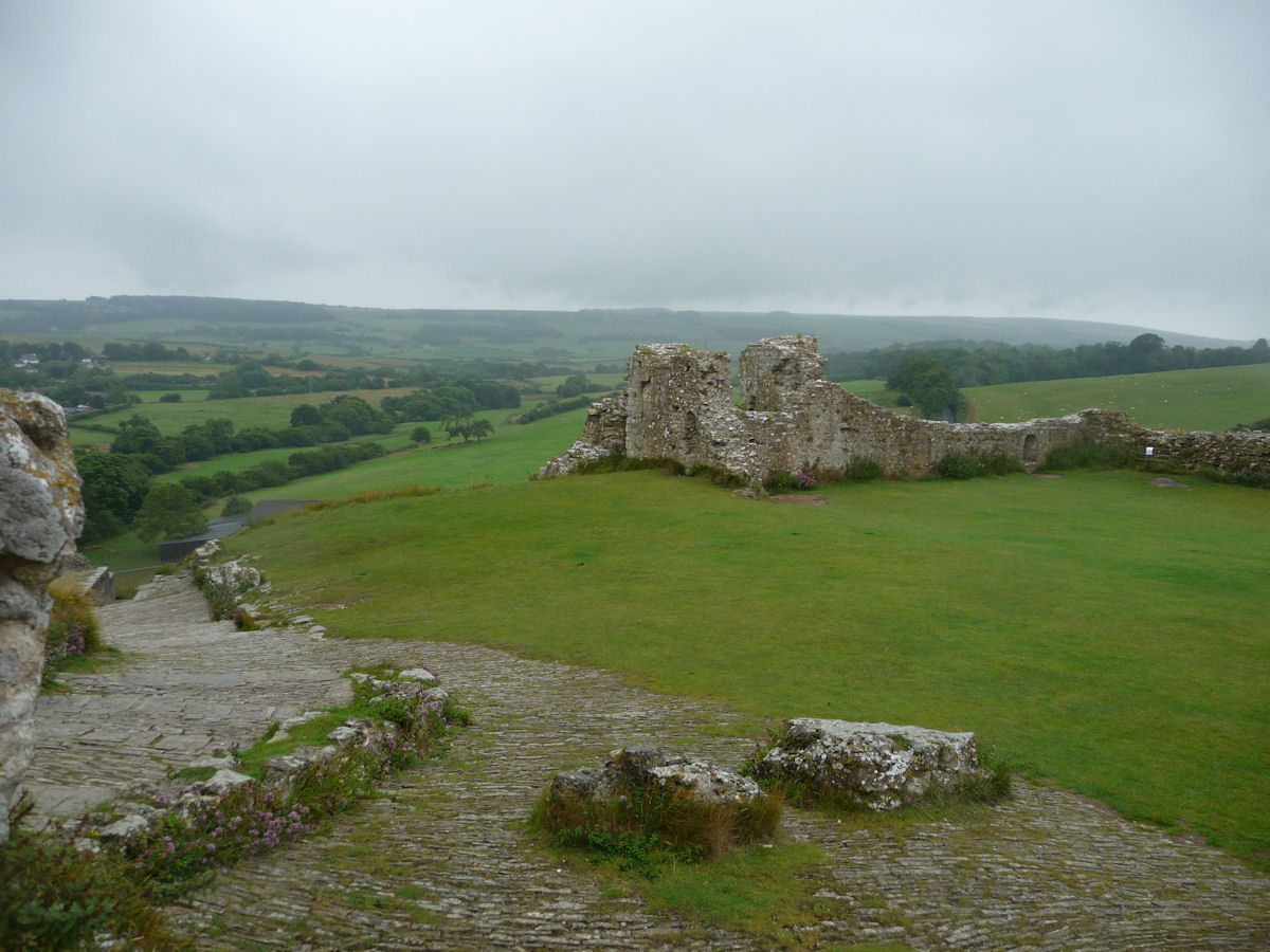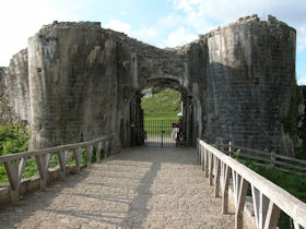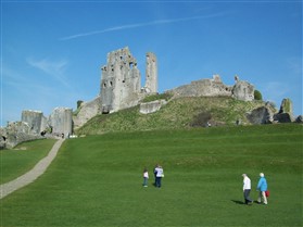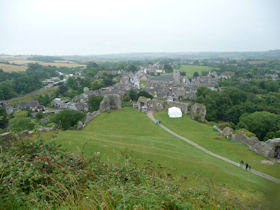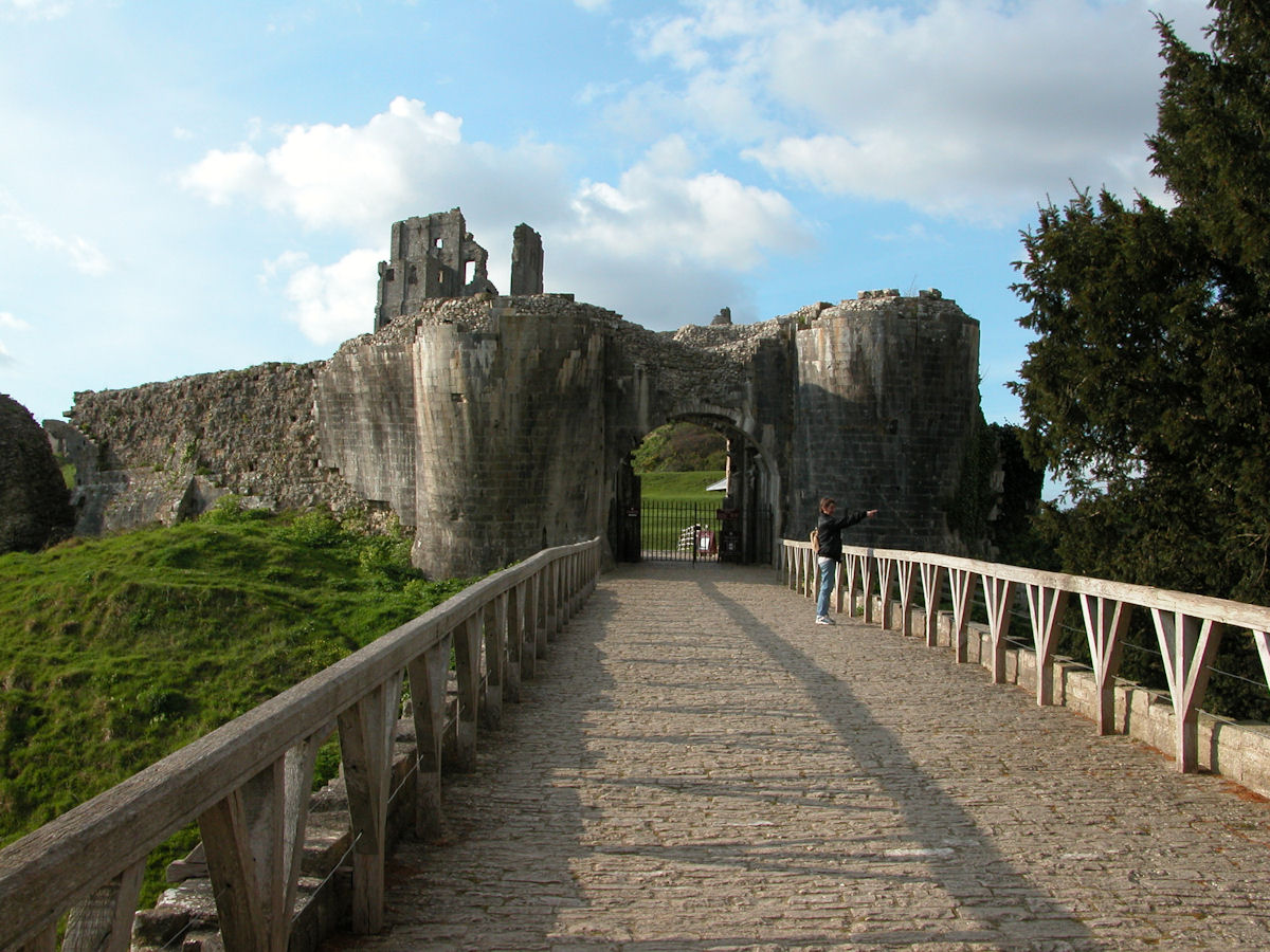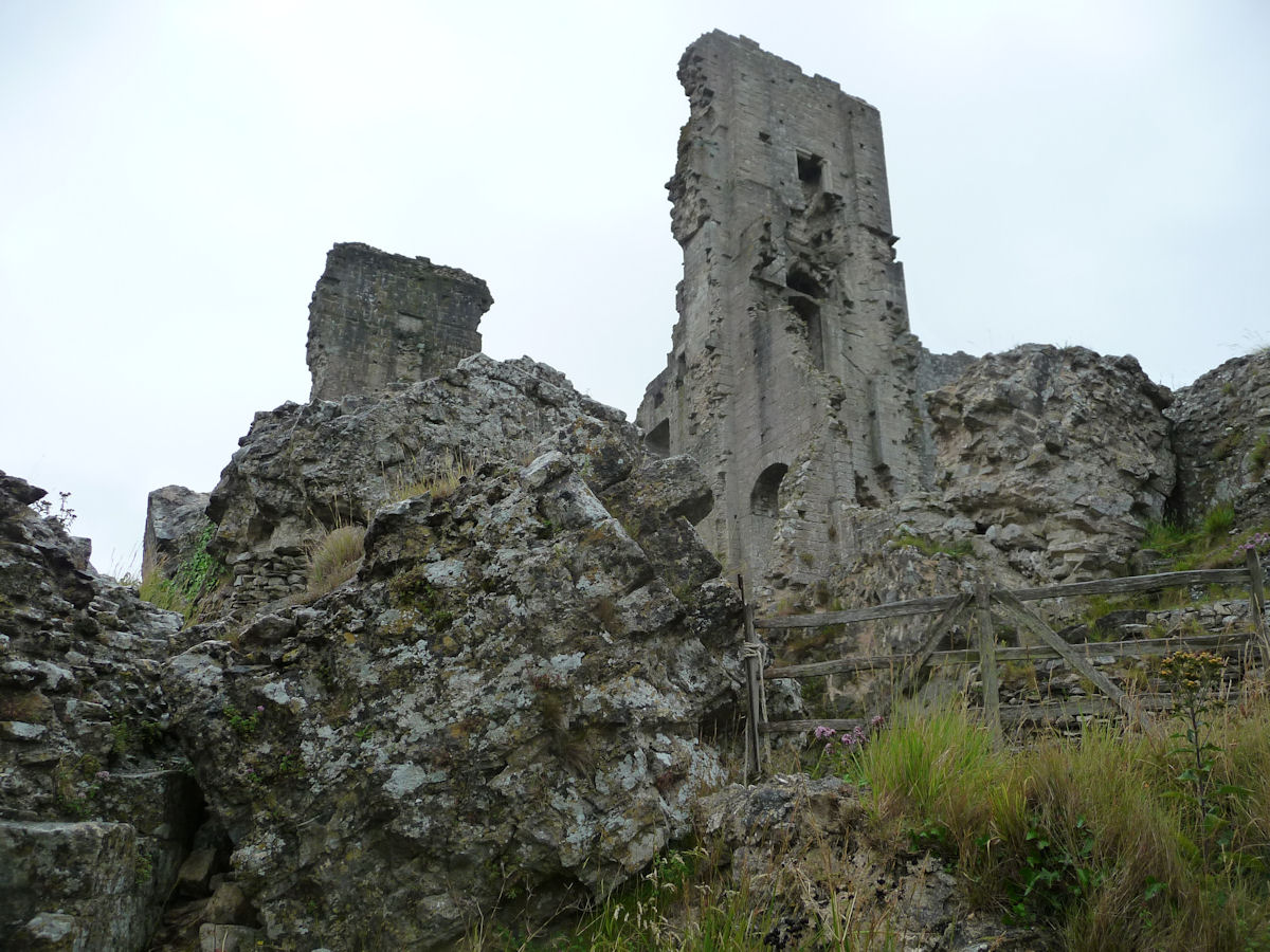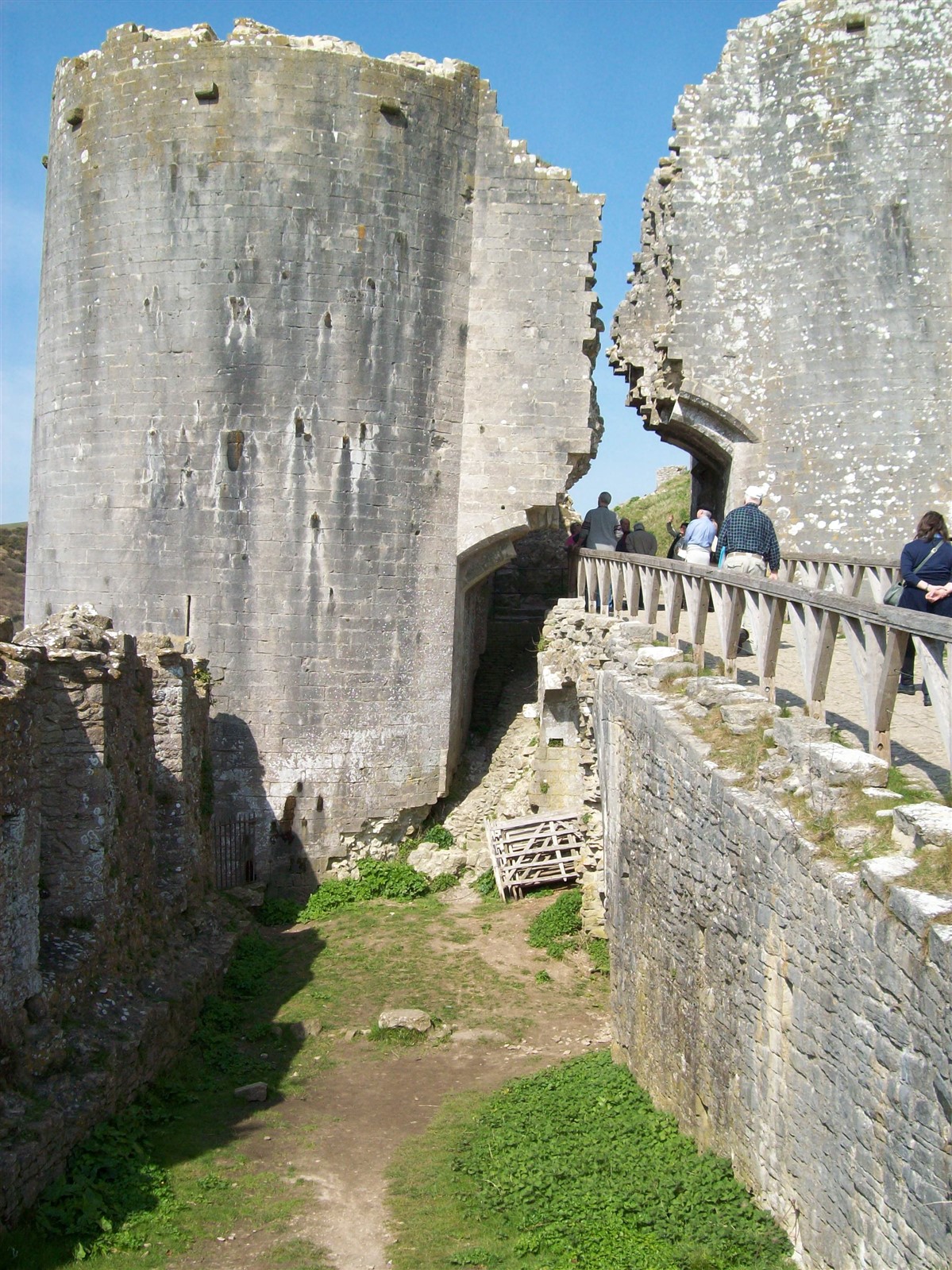 Corfe Castle, of strategic and military importance was built on a large natural mound overlooking the gap in the Purbeck Hills (RCHME). The foundations of a possible pre-Conquest building were revealed during excavations in the west bailey, 1950-52, and possibly represent either a 'hospitium' belonging to Shaftesbury Abbey or a royal residence associated with King Edward, who was murdered at 'Corfegeat' in 978 AD. (Penn). The earliest visible features of the castle, however, comprise late 11th century fragments of a hall in the west bailey and the wall surrounding the inner ward. The ashlar-built keep is dated to circa 1105 AD and the 'Gloriette' is an early 13th century courtyard mansion with 15th century addition, which was built to supplement or replace accomodation in the keep. The enciente (outer bailey) retains a defensive system of walls and mural towers mainly of the early and late 13th century. During the Civil War the castle was besieged and slighted. (RCHME). (PastScape)