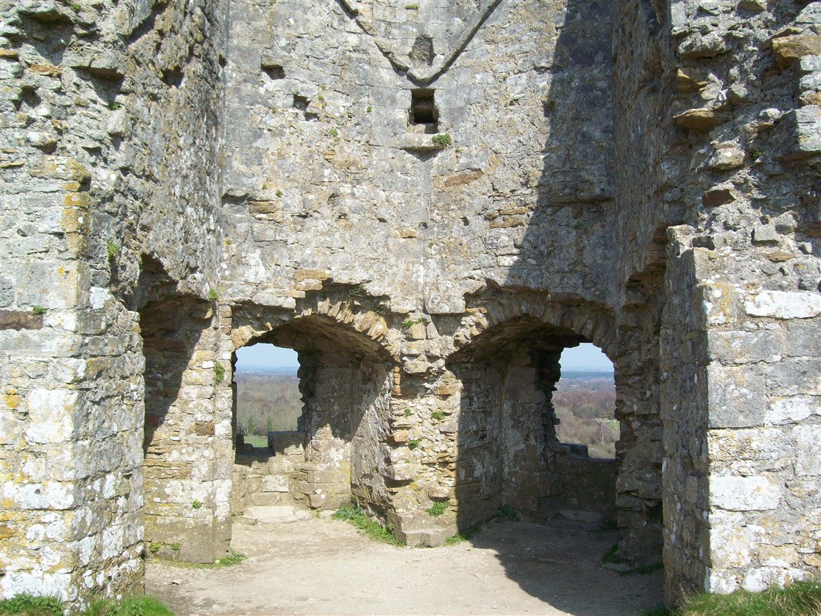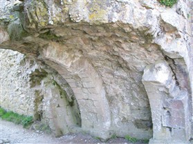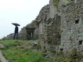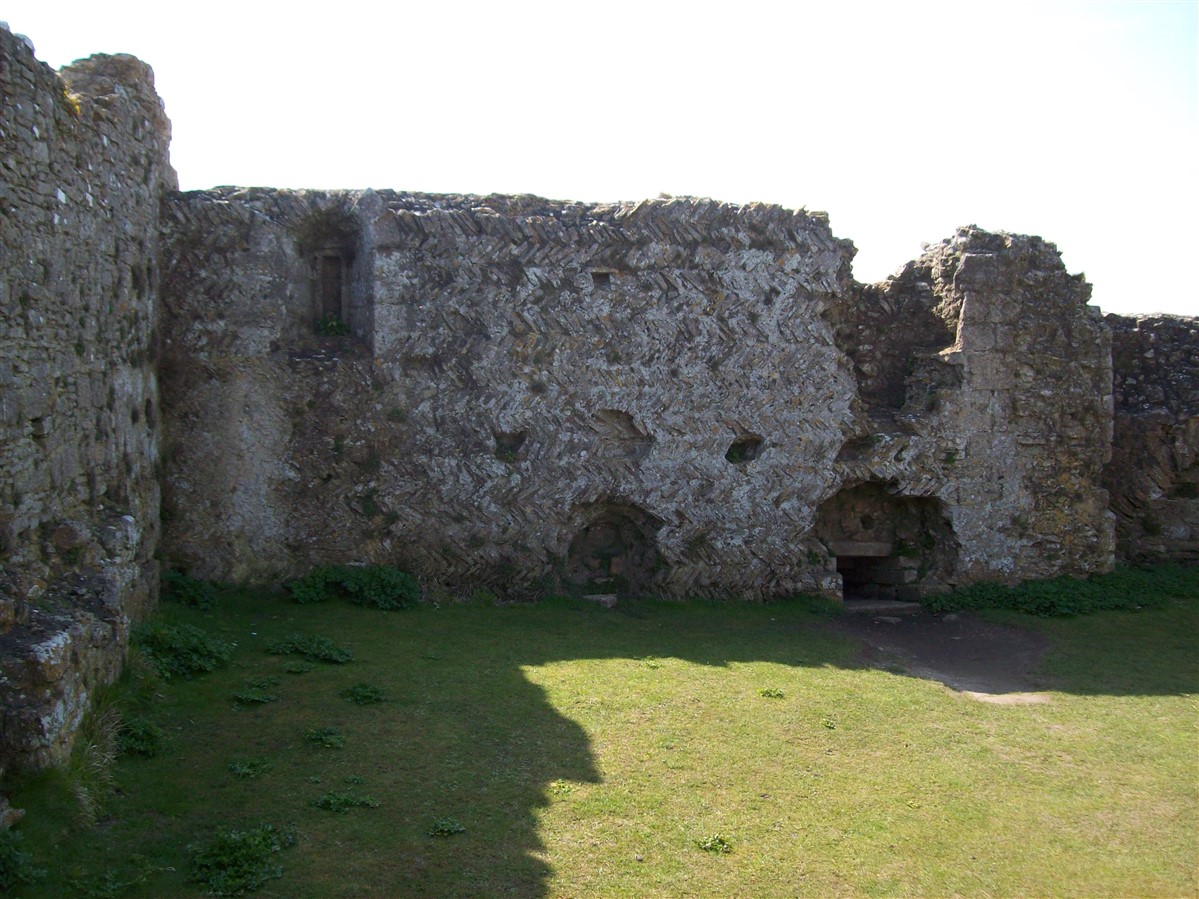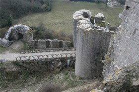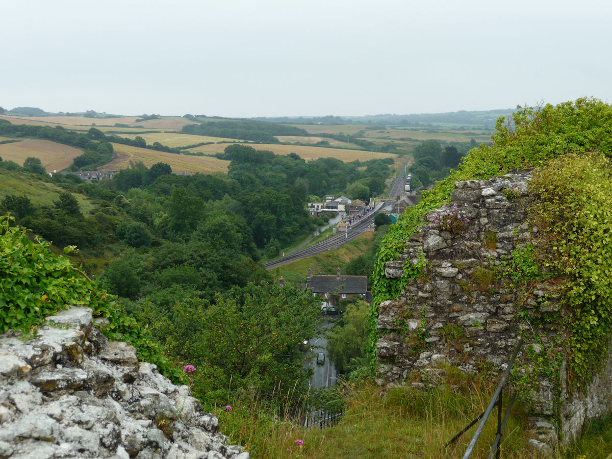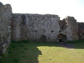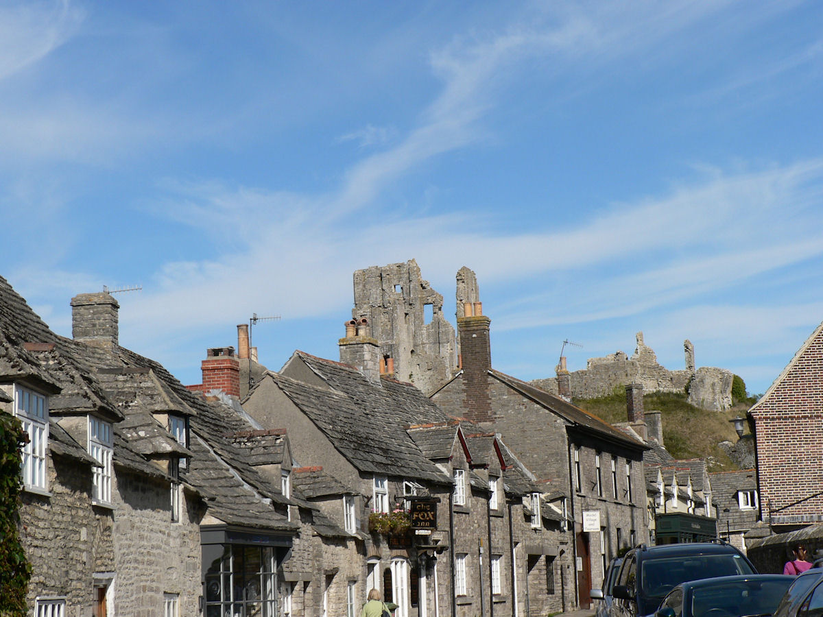 At north-west of the site, the remains of the Old Hall, late C11. Lower walls of this survive, with some herringbone masonry and part blocked round arched openings. At west end, remains of the Butavant Tower, early C13. Near the centre, the Keep, C12, square on plan, originally 3-storeyed - an extra storey inserted in C13. Altered in mid-C16 by Sir Christopher Hatton, - remains of Tudor windows and fireplaces survive. North of the Keep, large blocks of fallen masonry. West of the Keep, the Gloriette, a C13 first-floor hall house, with Hall and Solar over an originally vaulted undercroft. Several lancet windows survive, with deep roll mouldings. In spite of much destruction, still an impressive structure, dominating the village (listing description). Corfe was a major royal castle, not necessarily for its strategic value, but more for its convenience as a stronghold for the safe custody of political prisoners, important hostages and royal treasure (HKW). (PastScape)