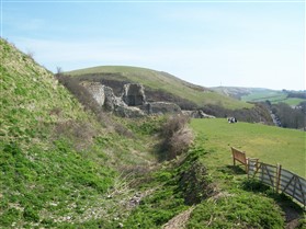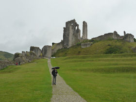 Corfe Castle is a striking and well-known example of an enclosure castle. Although ruinous, much of the castle survives as upstanding masonry including the keep and curtain wall, while partial excavation of the interior has demonstrated that buried archaeological remains survive relating to the castle's occupation and fortunes of its inhabitants. The history of Corfe Castle, including details ot its architectural development, is well documented with plans and written sources surviving from the 11th century through to at least the 17th century. Documentary records also indicate the important strategic role played by Corfe Castle in the civil wars of the 12th and 17th centuries. The Rings, an associated siegework, reputedly used by King Stephen when he unsuccessfully besieged the castle in 1139, is located a short distance to the west of Corfe Castle and is scheduled as a separate monument. This was later used as the site of a Civil War battery in the 17th century.