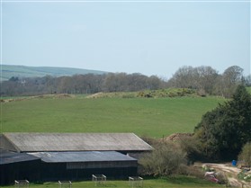 The monument includes a ringwork and bailey, later re-used as a Civil War battery, situated on the east end of a low chalk ridge running parallel to West Hill. The ground on which the site lies falls away on all sides except the north west, giving an excellent field of view. The circular ringwork has a large earthen rampart standing above a surrounding ditch. Within the rampart is a platform of earth best seen in the ringworks south east quadrant. This is thought to represent a Civil War battery emplacement. The bailey, lying to the SSE of the ringwork and adjoining it, has a bank and external ditch. The internal diameter of the circular ringwork is c.40m giving an area of 0.1ha, and the internal area of the bailey 0.2ha. Within the ringwork, the interior platform behind the south east rampart, thought to be the site of the Civil War battery emplacement, stands to 1.25m above the internal floor; the associated length of rampart stands a further 0.5m above this. The remaining ramparts stand to c.1.5m from the internal floor of the ringwork, and are c.6m wide at the top. The ditch is c.1.5m deep, 1m wide at the bottom and c.10m wide at the top. There is a 2m gap in the southern side of the ringwork's bank and ditch which cuts the bank diagonally. It is thought unlikely to be an original entrance. On the ringwork's north west side the rampart and ditch are cut by a modern road. The bailey, which lies SSE of the ringwork, slopes quite steeply to the south. Its ditch joins the ringwork ditch and is c.1.5m deep at its deepest point, but has been ploughed out in places, particularly towards the southern end of the monument. Similarly, the bank of the bailey, the height of which is similar to that of the ringwork, is much reduced to the south by ploughing. There is an entrance at the southern end of the bailey which appears to be original since the eastern bank forms a terminal at this point. The position of the ringwork and bailey, commanding the castle, town and approach route, supports the view that it is the remains of a siege castle constructed by King Stephen when he unsuccessfully besieged Corfe in 1139. Traditionally a battery was sited here in the 17th century Civil War, and the tithe map of 1844 calls the 'Rings' 'Cromwell's Battery'. (Scheduling Report)
