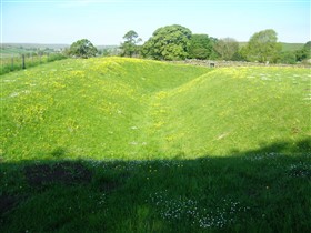 A ruined castle, whose present remains comprisie a Norman keep of circa 1171-87, foundations of a forebuilding and a moat. The castle was constructed on the site of a former Roman fort, which had probably been built to guard the Stainmore pass route. The castle was originally part of the estates known as the "Honour of Richmond" but passed to the crown in 1171. An earlier timber castle may have been initially built by Alan of Brittany in the 1130s. The castle was rebuilt by Henry II: in 1173-4, the castle was unsuccessfully besieged by the forces of William of Scotland. Later the castle was granted to other lords but reverted to royal ownership in 1471. The unpopular grant of the castle to John de Scargill by Edward II in 1322 was met by a revolt of the local tenants who besieged and took the castle. The castle was reported as being in ruins in 1325, and was said to have been dismantled in the 17th century. Hutchinson, who visited the site in 1776, stated that it was surrounded by a deep ditch with a platform to the south (this description of the topography is a reference to the Roman Fort, see record 17561). It incorporates some Roman masonry. The moat, now dry, survives only around parts of the west and south sides; it was cleaned out earlier in the 20th century and is now 2.4 metres deep. The keep survives: this is rectangular in plan. It is built of ashlar facing and a sandstone rubble core. The keep would originally have comprised three storeys with a first floor chamber and hall (PastScape)