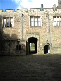 Carr's work beginning c,1767 included alterations and additions to domestic arrangements in kitchen yard, but most significantly the creation of a carriage- way through the castle from west to east, with necessary removal of ceilings and floors in great hall and in Chapel Tower. He inserted 2 rows of octagonal columns and false vaulting in the lower, now entrance hall, where visitors would alight; raised the vault of the east gate; and demolished the barbican to allow the exit of carriages.