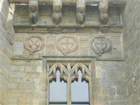 Austin and Johnson's work included a grand Jacobean-style north stair to the Baron's Hall or Great Hall, and the renewal of many windows. In 1901 J.P. Pritchett restored the interior of the chapel and revealed medieval aumbry, sedilia and piscina, although below the present ground level; the west arcade of the chapel was filled with painted portraits. The chapel windows contain reset medieval glass from France and Flanders, C16 German and other heraldic glass. (Listed Building Report)