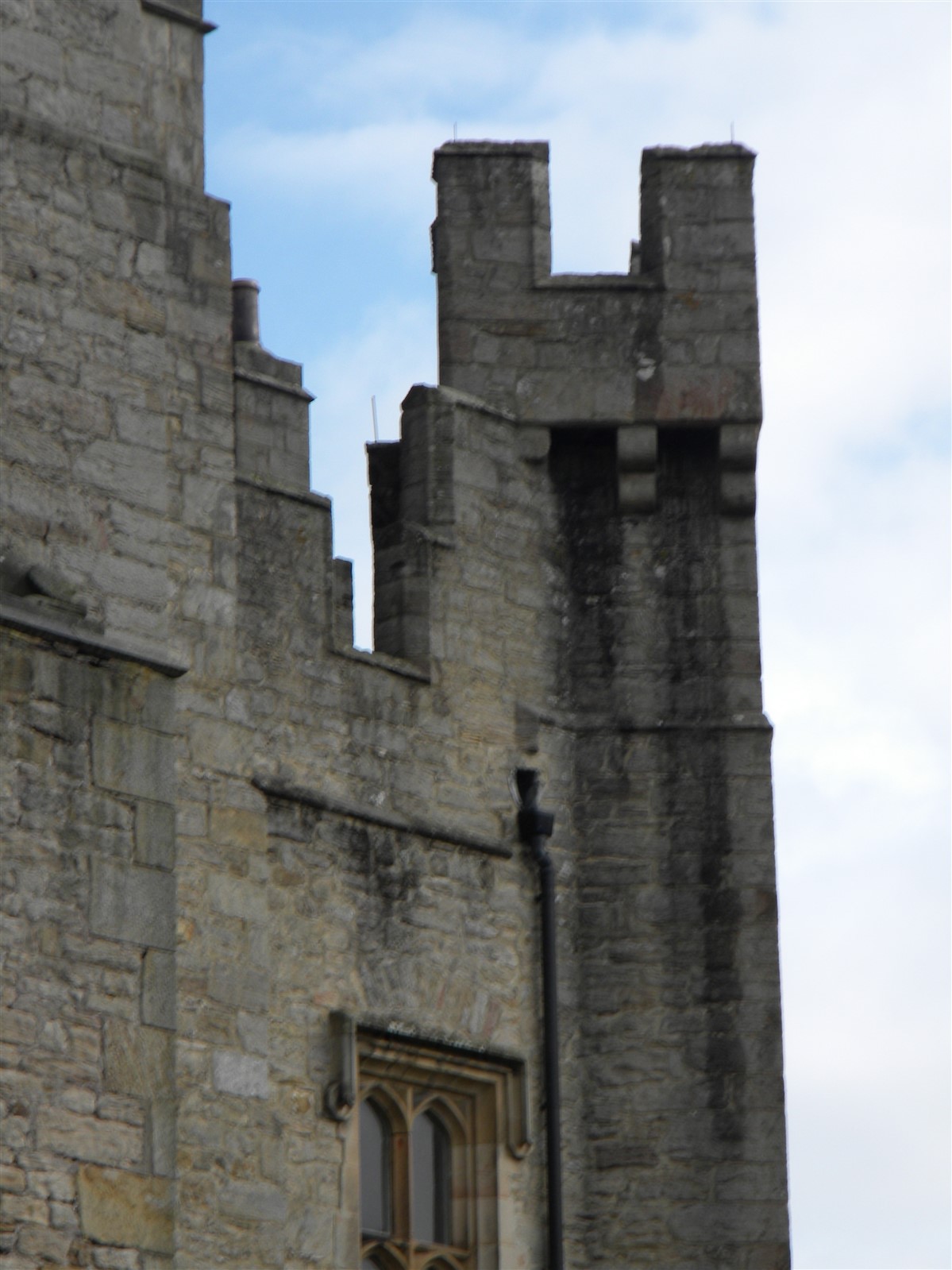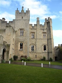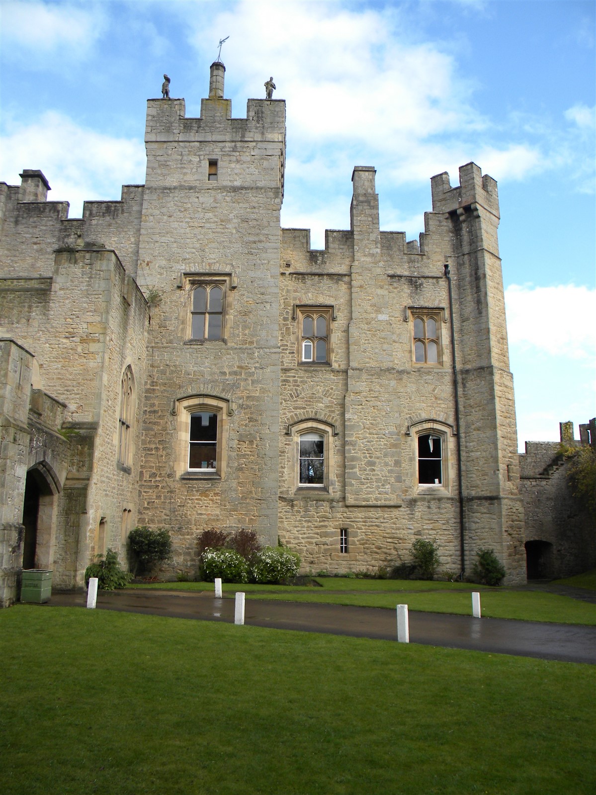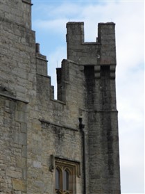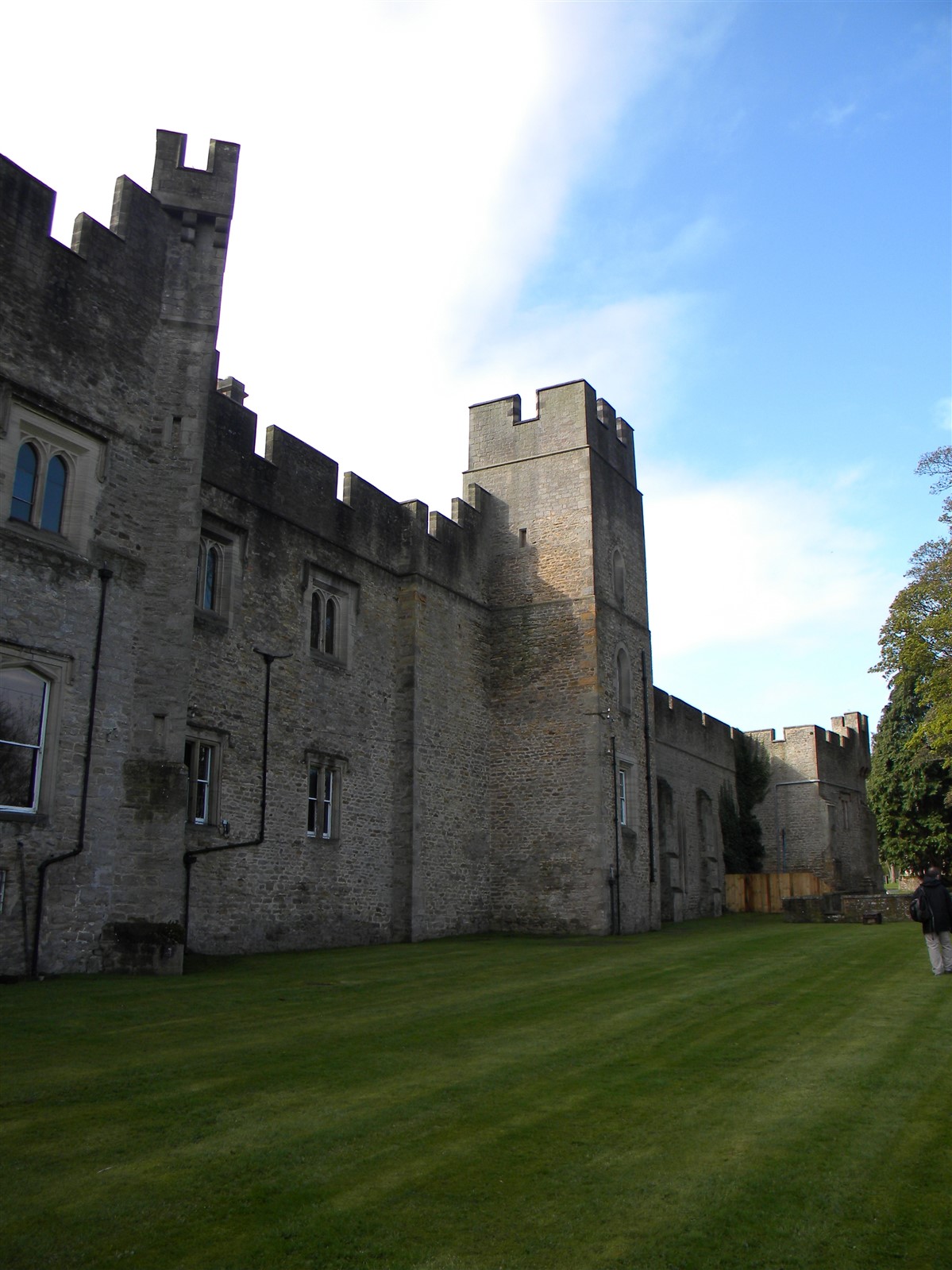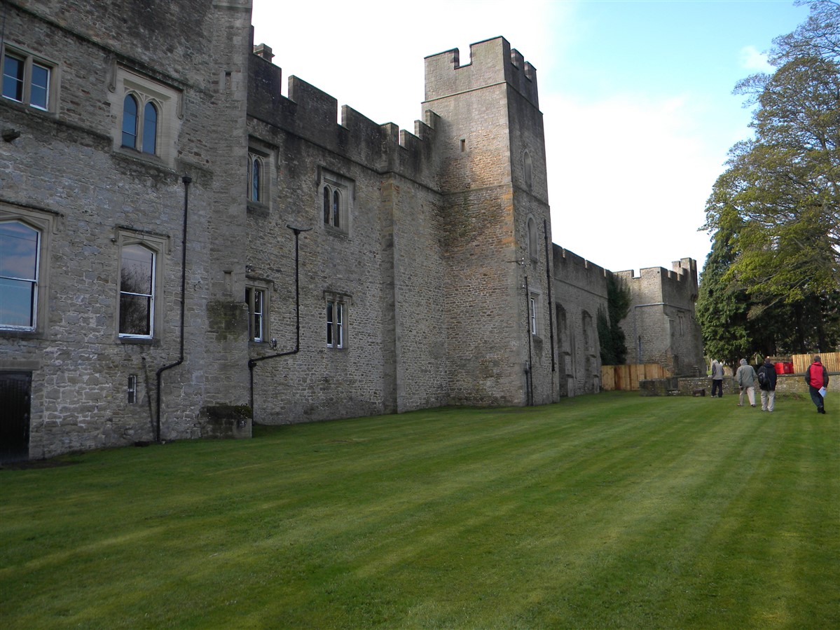The original rubble-built castle situated within the curtain wall has been completely restored and retains no exterior features of obvious antiquity. A modern block, similar in style to the original castle, has been added to the west side. A wall and ornamental ditch on the north side are also modern. (PastScape ref. Field Investigators Comments F1 DAD 05-JUL-57)