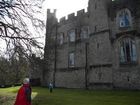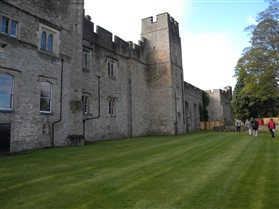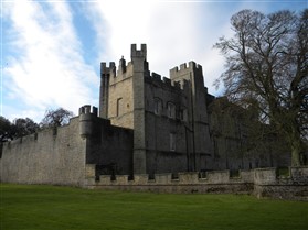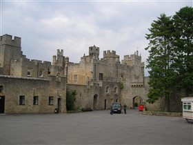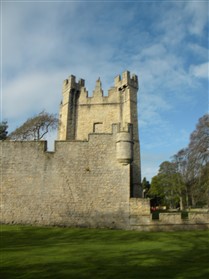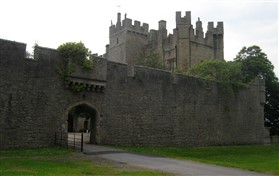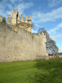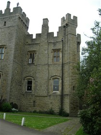 Castle, now caravan site and leisure complex administration and club buildings. Probably late C14; licence to crenellate 1410; partial demolition late C17; extensive late C18 and C19 alterations and additions. Coursed sandstone rubble with ashlar dressings and some quoins; roofs not visible. Main north range of medieval castle with west extensions and additions forming enclosure to service courtyard. Main front of north range 2 storeys, 8 bays, with stair turret projection in second bay and full-height porch with projecting porte-cochere in fifth bay. Port-cochere has double-chamfered flat-2-centred arches; wide angle buttresses; front corbel table and battlemented parapet. Tudor-arched surround to boarded door in porch, which has Decorated tracery in 4-light windows, and battlemented parapet with stone figures of buck and doe. Polygonal stair turret has 3 set-back stages with small chamfered lights, and heraldic panels and date and initials HC 1881, below corbelled battlements. Varied windows in other bays in medieval and Tudor styles, some with dripmoulds, are all C19. Bays flanking porch project slightly, the right under tower with figures on battlements. Corbelled external chimney stack from ground floor between 2 right bays, which have set-back stages; right end angle turret has similar set- backs, as has corresponding turret at left end which is abutted by west forecourt wall (q.v.). Square stone chimneys on corbelled stack and to left of entrance bay; octagonal stone chimney on front of tower behind porch with bronze fox. weather-vane. West extensions have some Gothic-style openings, some of mid-C19 character, and probably incorporate early north curtain wall. Interior of main range shows principal first-floor rooms with Gothic panelling and window reveals; barrel- vaulted ground floor