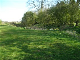 This uneven ground indicates the presence of at least one medieval fishpond which was used as a potato dump and in-filled some years ago. Further moat-like ditches situated to both north and south of the motte and bailey provide extra protection for the site. The southern ditch is 10m wide and 2m deep. This ditch originally ran through the area now occupied by the churchyard to link up with the ditch immediately external to the moat around the motte's western arm. Where it has been incorporated in the churchyard it has been in-filled. The northern ditch may also have connected with this western ditch but the relationship here is unclear since the northern ditch has been in-filled and remains visible only on aerial photographs. The moated site lies 250m east of All Saints' Church. It includes a sub-rectangular island about 40m square which is defined by a moat. The northern and western arms of the moat are largely dry and in-filled. They are 12m wide and up to 0.5m deep. The southern and eastern arms have been recut to create a large fishpond; these arms are 15m wide and up to 2m deep. Examination of aerial photographs suggests that the recutting has been quite substantial. A modern fishpond 38m long, north-south, 9m wide, east-west, and 1.5m deep lies to the east of the moated site. This feature lies outside the area of the scheduling and was only excavated in recent years. Little is known about the origins of the monument although it is likely that the motte was built in the years following the Norman Conquest of 1066 to watch the River Ouse and guard the approaches to York. In the later medieval period the complex was the property of the Aske family. Robert Aske was one of the leaders of the Pilgrimage of Grace, the rebellion against Henry VIII's Dissolution of the Monasteries. Although the Church of All Saints, which has 11th century origins, is considered to be a part of the wider medieval complex it remains in ecclesiastical usage and neither it nor the churchyard are included within the scheduling. Excluded from the scheduling, though clearly originally a part of it, is Aughton Hall and the part of the Hall's gardens to north and south of it. The house is excluded because it has been cellared, while those areas of the garden excluded have been thoroughly disturbed by gardening, building and terracing. (Scheduling Report)