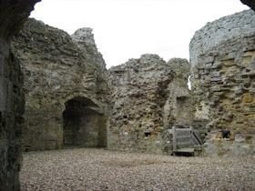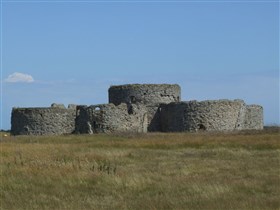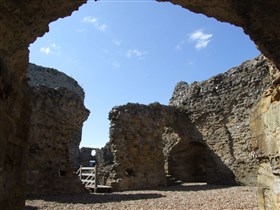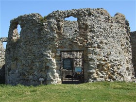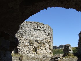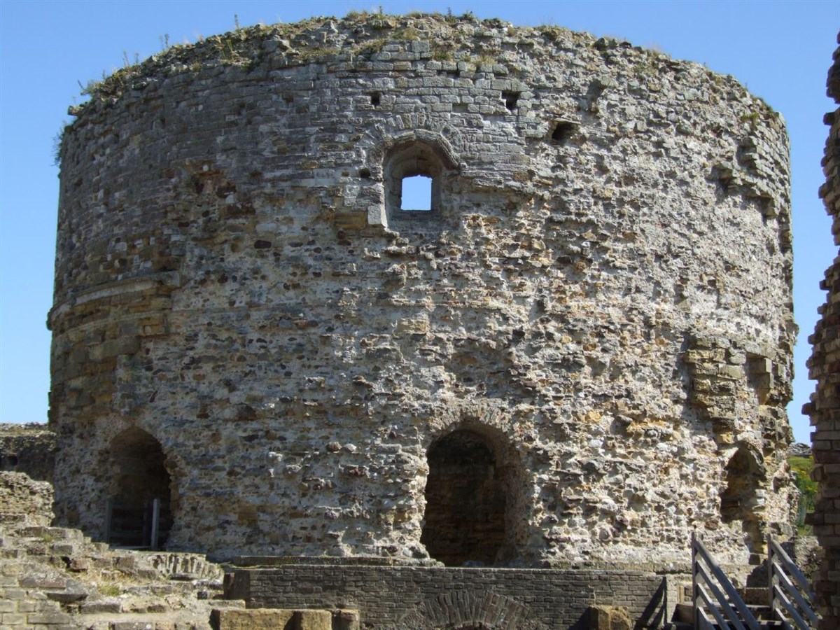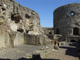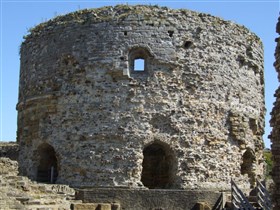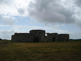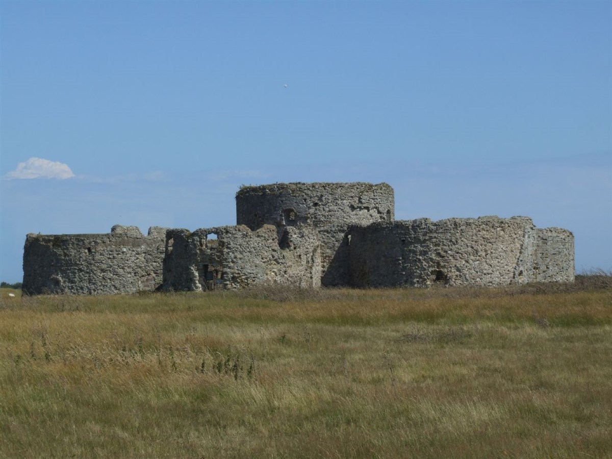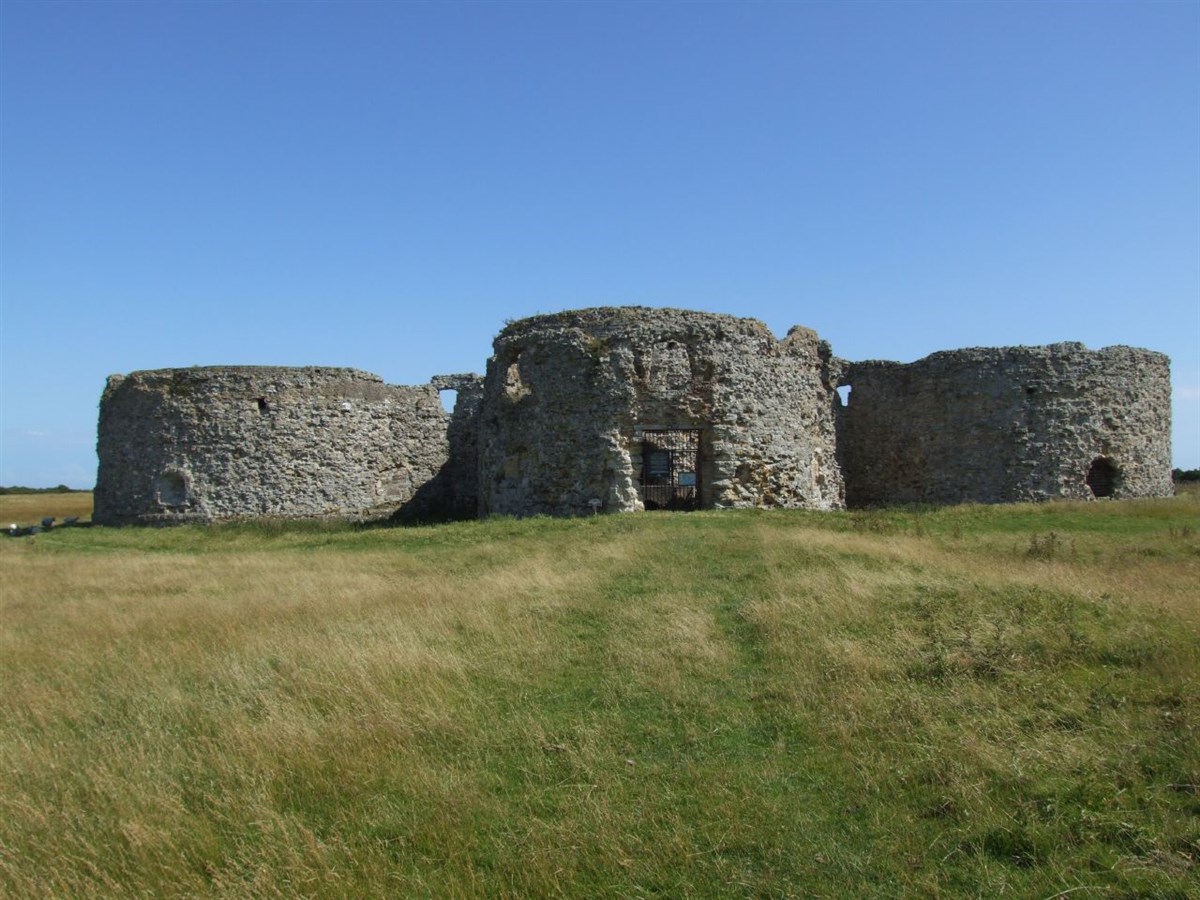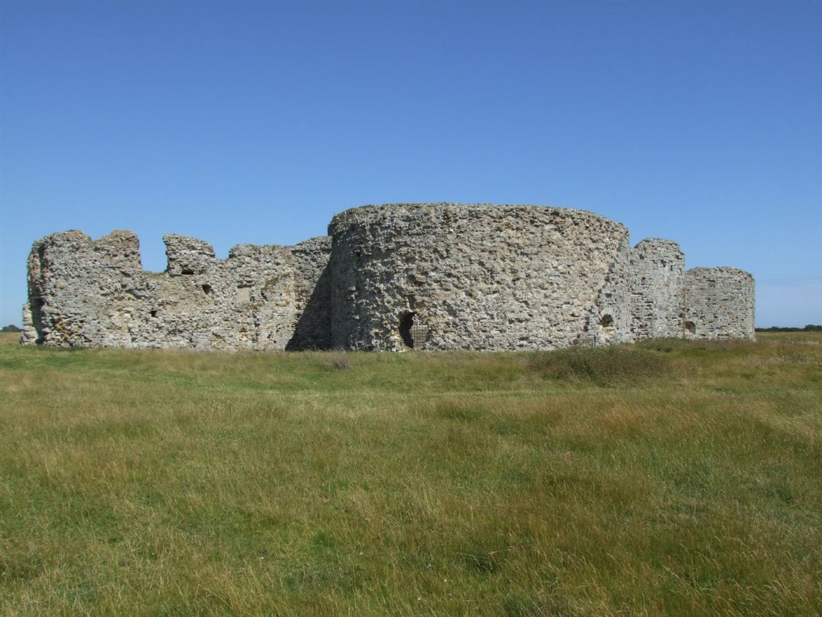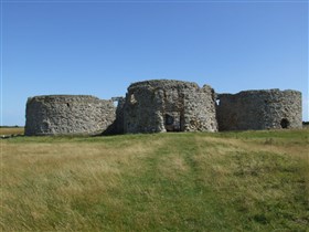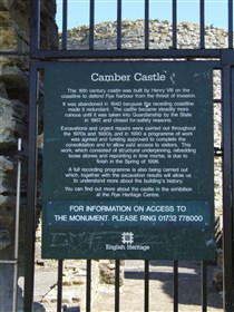 Additional building materials include Caen stone reused from the newly dissolved religious houses at Winchelsea c.1.5km to the south west, local timber and yellow bricks fired on site. The first phase dates to 1512-14 when documentary evidence suggests that the landowner, Edward Guldeford, began to build a circular one-storeyed artillery tower, topped with an open platform designed to house heavy guns, measuring 19.5m in diameter and c.9m high. This survives as the lower part of the central citadel of the completed castle. The second phase of construction took place between 1539-40 in the face of the political crisis and consequent fear of invasion occasioned by Henry VIII's divorce of Catherine of Aragon in 1533. This resulted in an elaborate concentric structure of four stirrup-shaped towers linked to each other by an eight-sided curtain wall and to a gallery around the remodelled and heightened central citadel by radiating vaults. Access to the castle was by way of a rectangular gatehouse to the north west. Work on the final phase began in 1542 and included the replacement of the earlier, stirrup-shaped outer towers with four semicircular bastions, the thickening of the octagonal curtain wall with an outer skin of masonry and some remodelling of the gatehouse. The castle buildings are surrounded by a group of associated earthworks including, to the north west, a causeway which leads up to the gatehouse. This survives as an earthen bank which extends out into the surrounding marshland for at least 20m. The bank is c.7m wide and up to c.1.5m high. Also to the north west of the castle buildings is a rectangular enclosure which survives in earthwork form. This was found during investigations in 1974 to have been originally a walled structure built with the same type of yellow bricks used in the construction of the castle buildings. To the north east of the enclosure are the remains of an associated small building also constructed of yellow brick. Further earthworks are visible on aerial photographs. Some of these are thought to be connected with defences and army training activities dating to World War II. By 1548 the castle was rendered largely obsolete by the silting of the Camber channel, a process exacerbated by the inning of the surrounding marshes to create agricultural land. It was, however, maintained in working order throughout the 16th century. The process of abandonment began in 1637 when the garrison was disbanded and all ordnance removed, and by 1643 the lead had been stripped from the roof. The monument was purchased by the Department of National Heritage in 1977, when it was placed in the care of the Secretary of State. Since then it has been the subject of a comprehensive programme of restoration and repair. (Scheduling Report)