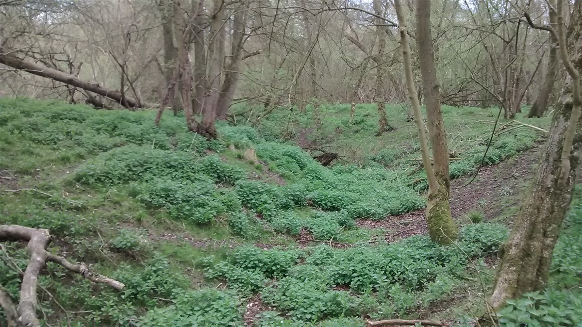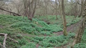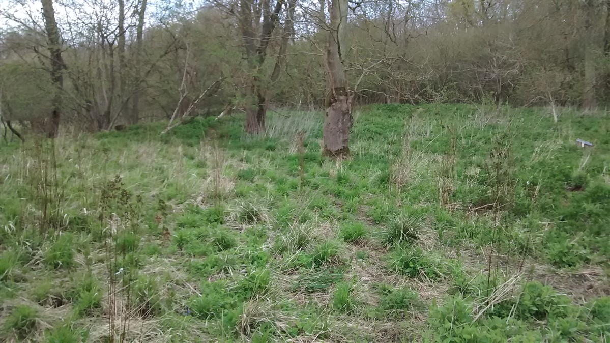 Mound surrounded by a moat, mound 85 x 90m. The moat (2 arms of) is shown on the old county map series (no 0S 25" available) but not the mound. The vicar of Chrishall church says it is 70yds north east of the church. A circular work 120ft in diameter surrounded by a ditch, now dry, except on the west side. The RCHM classifies it as a fortified mount. In the south west corner of Park Wood, a sub-circular ring work in close woodland overlooking land to the west but in an otherwise non-commanding position. The work measures 85m overall east-west by about 90m transversely within the enclosed area (level with the surrounding ground), is 4.5m above the level of the surrounding ditch which varies from 12-20m in width. Although water-filed on the west side a slight east to west slope of the ditch suggests there was no intention to form a wet moat. The interior is mainly level with denuded perimeter banking on the north side and an amorphous raised area in the south east corner. Prominent on the north side of the work with traces visible elsewhere is a crudely formed external spoil bank. Crossing the ditch on the south side is an apparently modern causeway. Surveyed at 1:2500 on AM. The 1955(?) OS card gives different dimensions - 37m wide in diameter surrounded by a moat 2.5m deep and 15m wide. Also, from the south east side of the moat there is an extending arm approx 30m long x 12m wide, also dry. Site heavily overgrown. (Unlocking Essex's Past)