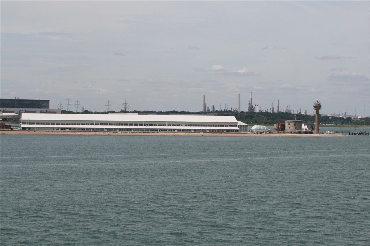 In 1896 the installation of generators and other equipment for Defence Electric Lights (searchlights) necessitated the construction of a protective concrete ceiling. The basement was lined with brick and possibly deepened at this time while new access was provided from courtyard level. That from the first floor was blocked. In 1907 the generators were removed and the basement was converted to a cartridge and shell magazine by the insertion of a brick cross wall with lamp niches and an ammunition hoist, now removed. The modification of the basement ceiling resulted in the floor level of the first floor being lowered by 2 feet (0.6m). At this time the first floor, which retains its 16th century outline and the remains of an original fireplace, was converted to a barrack room. The second floor has also been considerably altered, although its walls are largely Tudor and incorporate the remains of two fireplaces and a garderobe. This level once carried heavy guns firing through large embrasures but was also converted into a barrack room in the late 19th century. The ceiling was subsequently strengthened to help support the newly installed roof battery. Traces of the ammunition hoist which ran from the basement to the roof can be seen in all floors and ceilings throughout the keep. The courtyard is enclosed by a 16-sided curtain wall with a flared apron sloping into the moat. Formerly 15 of the sides possessed embrasures through which the courtyard guns fired and above which was a deep parapet shielding the wall walk behind. The 16th side was occupied by the gatehouse. In c.1770 the majority of the curtain wall was lowered to its present height and the gatehouse was extended, preserving the original embrasures on either side of the entrance. On the north side of the courtyard is a long concrete building constructed c.1896 to hold three searchlights (Defence Electric Lights). Three of the Tudor embrasures were cut back at this time to provide a better arc for the searchlights and a further embrasure is blocked to each side of the three. The gatehouse in its original form is shown by an early 18th century engraving to have been a simple two storey structure, probably with a single room above the gate passage. The gatehouse was flanked by a gun embrasure at first floor level on its western side and its roof also had provision for guns. The gate passage is approached from over the moat by a 19th century fixed metal-framed bridge; a replacement for the wooden structure shown on early 18th century engravings. The grooves for the portcullis which originally protected the gate passage can still be seen. In c.1770 the gatehouse was heightened and widened to provide better accommodation for the governor. The section added to the top of the original gatehouse has one small window while the flanking additions have none. The accommodation thus provided has been extensively altered internally. Alterations carried out in 1896 included the provision of a guardroom and cell on the west side of the gate together with the construction of a brick cookhouse, storerooms and latrines on the south end of the gatehouse. The stone-lined moat which lies beyond the curtain wall is 16-sided, 2.6 deep and 8.8m wide. Beyond the moat on the seaward side, to the north, east and south east, is a counterscarp, paved with stone and gently-sloping. Stone sea defences are also provided on the east side of the castle. The precise extent of these features is uncertain as they are now buried by shingle accumulations. Calshot Castle was constructed as part of a chain of coastal fortifications built to protect vulnerable points in the event of a French invasion. Calshot Spit dominates the shipping route to Southampton as the deep water channel runs close to shore at this point. The major construction work was carried out in 1539 and 1540, most probably using building stone from Netley or Beaulieu Abbey. Documentary evidence records that the lead for the roof came from Beaulieu. By the end of the 1540s Calshot was one of the most heavily armed of the Solent fortresses, with a total of 36 guns, though this had fallen to ten serviceable guns by 1559. In 1584 Queen Elizabeth's government devoted funds to the repair of several of the Solent defences as part of its precautions against a possible invasion from Spain or the Netherlands. Calshot by this time had suffered a disastrous fire which had gutted the keep and timber repairs required 127 trees from the New Forest. The strategic importance of Calshot ensured its survival during the Civil War when neighbouring castles at St Andrew's and Netley were disabled. During the War of Spanish Succession (1702-13) it was equipped with a maximum of 25 guns but this was reduced to 13 by 1725. The first significant alteration of the Tudor fabric, which took place in 1774, preceded several complaints about old and defective guns. In the late 19th century searchlights, or Defence Electric Lights, were installed at Calshot to be used in conjunction with a quick fire gun battery which was built to the south east of the castle and completed in 1897. Nothing now survives of this battery and it has not been included within the scheduling. Generators powered by oil engines were installed in the basement of the keep while the two floors above resumed their role as barrack accommodation. The interior of the gatehouse was extensively altered between September 1896 and November 1896. In 1907 Calshot Castle underwent its last major modification as a fortress. The roof of the keep was strengthened to permit the installation of a pair of quick fire guns to augment the adjacent battery. The searchlight generators were removed from the basement which was converted to a cartridge and shell store, linked to the roof by a hoist in the centre of the keep. Calshot and its adjacent battery were stripped of their weapons before the end of the World War I. However, in 1940, two quick fire guns were remounted on the roof of th