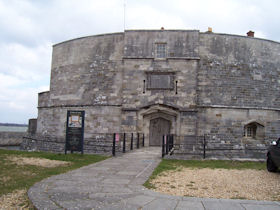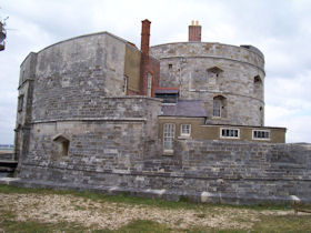 Castle. 1538-41 for Henry VIII's coastal defences, altered C18, 1868-71 and C20, twice restored by DoE 1985. Dressed squared Portland stone, brick and old plain tile roofed addition. Plan of circular moat around circular island with wall around edge, raised to 3 storeys on one quadrant, for gate house. In centre of island 3½ storey keep tower. Both sides of moat faced in dressed stone, with moulded coping. On inner side wall rises from coping with open-topped embrasure. The 3 storey quadrant has slightly projecting full-height gatehouse. C20 bridge stands in front of recessed 2 deep order pointed archway with double doors. Each side pilaster with impost to chevron hood. Panel over, framed by pilasters with early Renaissance decoration. Each side loopholes. 3rd floor heavy moulded string course, that wall originally coping before wall was raised in C18. In centre, cutting string is 12-pane sash. Either side of gateway are embrasures now fitted with 2-light casements and heavy moulded string course at head of gateway level. Central keep tower has only pointed doorway on ground floor. Moulded 1st floor string. On 1st floor tall embrasures with 12-pane sashes. 2nd floor raised band. On 1st floor wider embrasures with 12-pane sashes, set slightly off-centre to those on 1st floor. Moulded cornice to tall parapet that has additional floor behind it. (Listed Building Report)