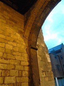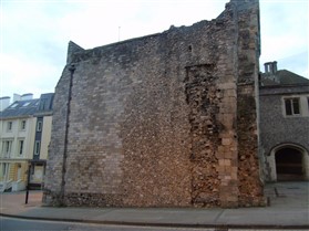 Medieval city walls, of limestone rubble, based on C3 Roman circuit, fragmentary, but traceable throughout their length. Two gates remain. Walls shared by the city, Wolvesey Palace Cathedral Close and Castle Murage grant of 1228 first in series until late C14 when much building was done. Repairs continued until mid C15.