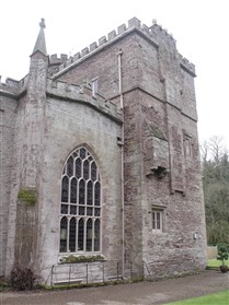 Castle, now country house. Part of tower and a gateway survive of C14 structure, remainder largely rebuilt by Nash between 1795 and 1807 for the Scudamore family; further C20 alterations. Sandstone rubble with sandstone ashlar to central part of front, stone slate and Welsh slate roofs, mainly hidden by crenellated parapets. Irregular plan, generally aligned north- east/south-west with early tower at north-east angle; part of front projects to south-east; main entrance to south-east front; various rectangular and grouped polygonal chimneys. Irregular two and three storeys. South-east front: salient features of the front are, to the left, a two-bay, two-storey hipped roofed block with glazing bar sash windows; next, to the right, a seven-bay two-storey block with similar glazing bar sash windows and with the central three bays breaking forward slightly with a crenellated parapet rising to the centre. The front is made assymetrical by the two-storey porch; crenellated parapet carried over corbel table, tall Tudor arched entrance surround with secondary arch and paired glazed doors behind. Single- bay recessed further to the right with triple rounded arches on three floors; projecting wing to right with three square-headed mullioned windows with decorative glazing bars on ground floor and one similar 2-light window to first floor. South-east end of projecting wing with Perpendicular style oriel window to first floor and Tudor arched door surround with fanlight and glazed double doors. North-east side: probably originally free-standing tower projecting slightly to far right end, three stages with chimney breast rising from second stage to right of garderobe on corbels. Very tall circa 1800 window of Gothick Perpendicular design with crenellated parapet slightly gabled over. Block to left with two windows on first floor and doorway below, all of similar "Perpendicular" style design
