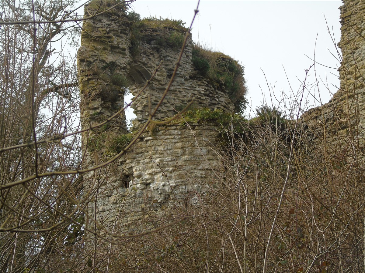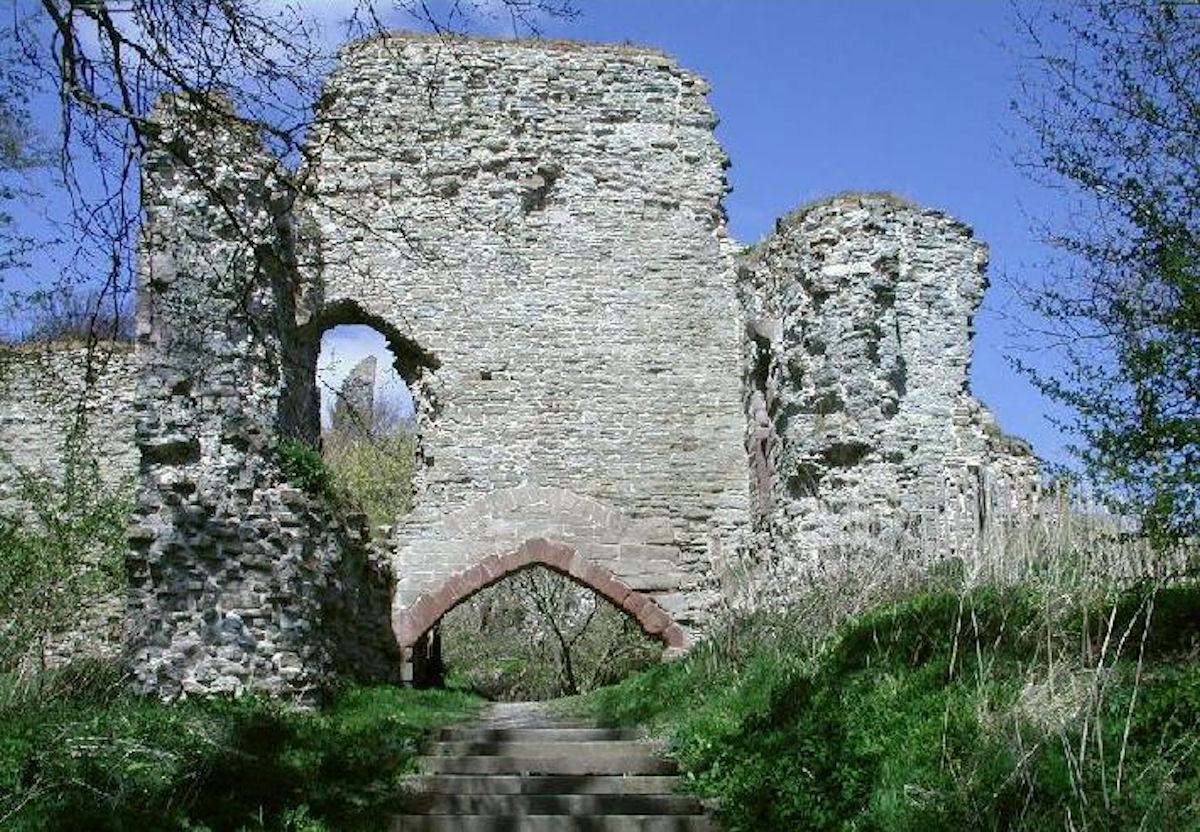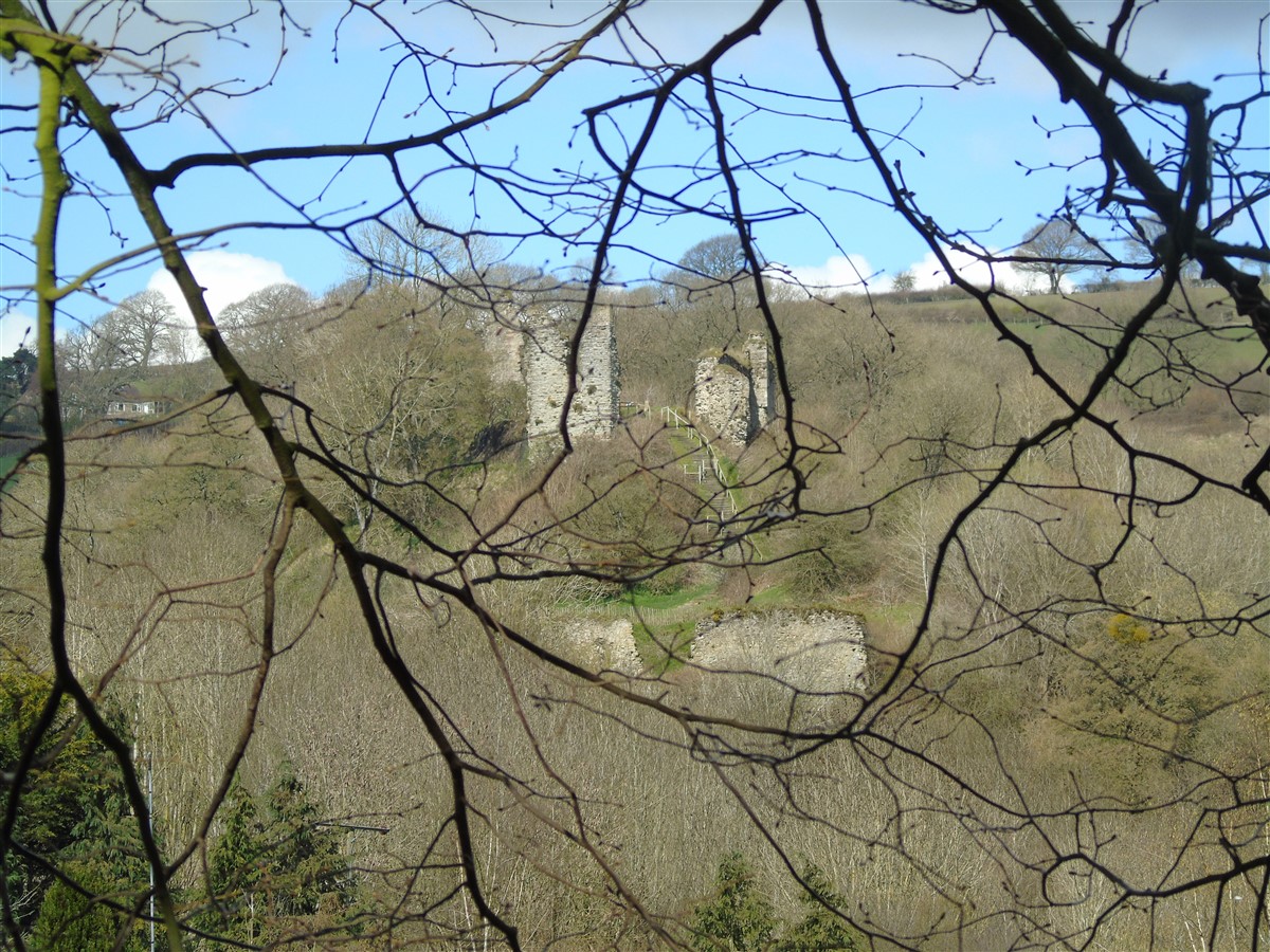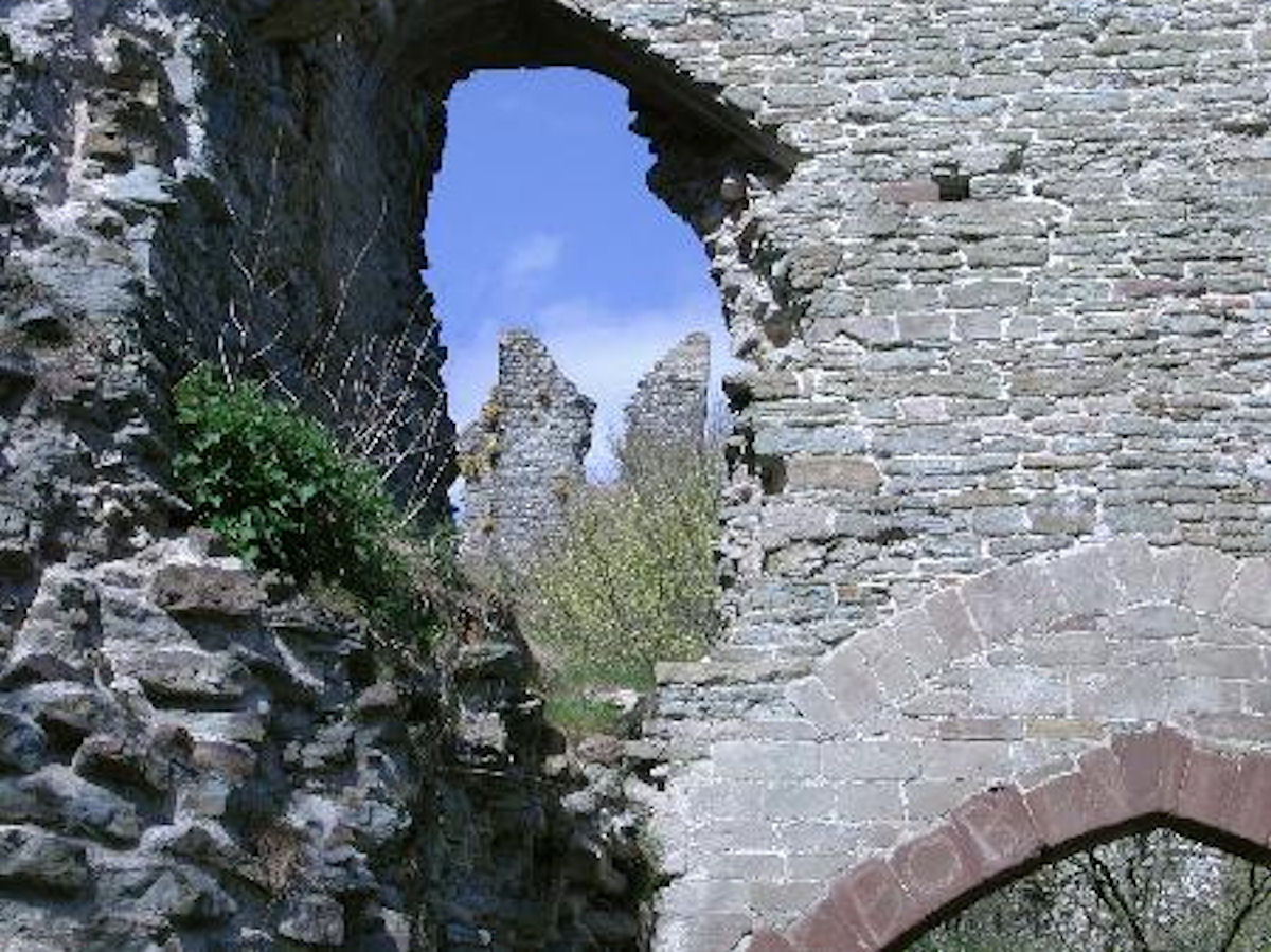 Multi-phase stone-built castle. Probable mid-C11 origins built by William Fitzosborn, Earl of Hereford and held by Ralph de Mortimer at the time of the Domesday Book Survey (1086). Some of the masonry is C12 and C13 but the structure was otherwise rebuilt during the early C14, probably by Roger Mortimer. It was repaired during the mid- to late C16 by Sir Henry Sydney and used as a prison. In 1643 it is said to have been dismantled by the Harley family who had bought it in 1601. Sandstone rubble with ashlar dressings. Present ruins consists of parts of the walls of a shell-keep on a mound to the north-west of the site, portions of the enclosing walls of the bailey to the south-east including three towers, a gatehouse and a single fragment of wall near the middle of the enclosure. Keep: roughly oval and entered from east side with a stretch of wall on the north side with a flat buttress and terminating in a second buttress. The upper part of this wall and the rest of the surviving walling of the keep is C14. There was also a south tower, of which the south wall remains with the embrasure of a single-light window, and a west tower, which must have been at least three storeys high and contained a spiral staircase. The main curtain wall carried up to the keep mound at the east end and the south side. North tower: C14. It retains its outward side and plinth and two of the faces have the remains of window embrasures. East tower: probably C13. Circular outward face with plinth survives with large window embrasure and grade-robe shaft. Gatehouse: C14. Only the central portion remains with a four-centred archway (half-choked with debris) of two orders; the outer moulded and the inner order chamfered, and between them is a portcullis groove. East of the archway is the remains of a small room with a west doorway, a right-angled passage and a rubble vault. The wall west of the archway has the remains of a window and door and adjoins a fairly well- preserved section of curtain wall. South tower: C14. Rectangular plan and of at least three storeys with a basement and a moulded plinth; the basement under the east half is approached by a square-headed doorway in the north-west angle down a flight of steps. The ground floor has four windows and a fireplace (the two south windows have cusped pointed heads) and there are four first floor windows. The curtain wall to the west is quite well preserved and adjoins the south-west tower: this was of similar date, plan and height to the south tower. The south wall has a plinth and second and third storey window. The adjoining curtain wall to the north has traces of a window, a chimney flue and an ogee-arched doorway. There are also the remains of a rectangular inner enclosure south-east of the keep mound. An engraving by Buck of 1732 shows little more of the building than presently survives. It was one of the largest castles built along the Welsh border and appears to have been a structure of the first importance. (Listed Building Report)