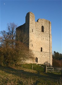 The upper floors of the keep provided accommodation for the bishop whilst his servants would have been housed on the first floor. Battlements and a fighting platform originally topped the keep, although these have been destroyed. Access to the upper floors was provided by a spiral staircase housed in an external angled turret pierced by arrow loops attached to the north western corner. The keep is lit by round-headed windows. The north eastern face is the most ornate with five round-headed arches at second floor level, of which the outer four are blind, headed at third floor level by two further windows. This arrangement is continued on the south eastern face with a blind arcade of four arched openings with one window over. Associated with the keep are two low stretches of medieval walling incorporated within a later, post-medieval garden boundary wall running for c.39m towards the north east from the north eastern corner of the keep. The first stretch of medieval walling forms the first few courses of the garden wall and runs for around 23m from the keep. Traces of herringbone work indicate an 11th or 12th century date. The second stretch is shorter and lies around 5m to the north east. Both will date to the period in which the castle was occupied and have been interpreted as forming part of an enclosure attached to the castle or a forebuilding designed to protect the original entrance to the keep. Surrounding the keep to the east, south and west is a roughly rectangular area of undulating ground which will contain traces of buried structures, including timber service buildings, artefacts and environmental evidence associated with the castle. The monument is in the care of the Secretary of State and open to the public. The castle keep is Listed Grade I. (Scheduling Report)
