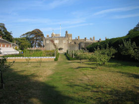 At the centre of the original castle is a three-storeyed circular citadel, or tower, originally with a central newel staircase, which no longer survives. This provided accommodation for the permanent garrison, originally a captain, deputy, porter, ten gunners and four soldiers, with the officers' accommodation on the first floor. The ground floor contained the kitchen. The rib-vaulted, brick-lined basement originally housed the well and was used to store ammunition and supplies. Surrounding the citadel, beyond a narrow circular ward, are four low semicircular bastions connected by a curtain wall. These provided platforms on their upper levels for heavy guns, now represented by 18th century cast-iron guns mounted on carriages. Within the outer wall of the basement of the bastions, facing into the moat, is a continuous gallery pierced by 32 hand-gun ports which gave enfilading coverage of the bottom of the moat. Vents over the ports were designed to draw off the gun smoke, and at irregular intervals in the wall behind are L-shaped ammunition lockers. Contemporary illustrations show that the citadel and bastions were originally capped by broad rounded parapets pierced by gun embrasures. These survive on the south western bastion, but, elsewhere, have been removed and replaced by battlements during alterations carried out in the 18th and 19th centuries. The castle buildings are further protected by a stone-lined dry moat, now forming part of the castle's gardens, up to 25m wide and 5m deep, originally crossed on its western, landward side by a wooden drawbridge, giving access to the gatehouse within the north western bastion. The drawbridge has been replaced by a stone causeway. Defensive features incorporated within the gatehouse include eight murder holes, or vents (through which offensive materials could be dropped on attackers) set in the ceiling of the entrance passage, and a staggered approach to the ward and citadel. The outer defences were originally augmented by a series of bulwarks, or earthen defences, built along the coast between the castle and its sister castles at Deal and Sandown, although these defences no longer survive. The castle saw no action until the Civil War when, during the Royalist revolt in Kent in 1648, the castles of the Downs were captured and held out against Parliamentary forces for several weeks. The garrison's accommodation was improved at the beginning of the 18th century by the construction of a two-storeyed, rectangular timber and weather-boarded block, known as the Gunners' Lodgings, across the upper level of the southern bastion. This building now houses part of the castle's collection of heirlooms. Since the early 18th century, Walmer Castle has been the official residence of the Lords Warden of the Cinque Ports, a life appointment in the gift of the Crown. Subsequent alterations during the 18th and 19th centuries were designed to create a residence perceived to be commensurate with the dignity of the largely honorary office. The first resident Lord Warden was the 1st Duke of Dorset (1703-13 and 1727-65) who arranged for the construction of a brick-built, battlemented block which extended at first floor level from the exterior wall of the citadel out onto the north eastern bastion. The most extensive alterations were carried out by Lord Granville, Lord Warden between 1865-91, who added to the height of the Tudor gatehouse by building a suite of 13 rooms above it in the late 1860s. He also continued to develop the late 18th century gardens to the west of the monument originally laid out for William Pitt the younger, Lord Warden from 1792-1805. The castle gardens are Listed in the English Heritage register of parks and gardens of special historic interest at Grade II. Another famous resident Lord Warden was the Duke of Wellington (1829-52) who died at the castle, Queen Victoria stayed at the castle in 1835 and 1842. The castle continues to form part of the Crown Estate and now houses a museum displaying the furniture and heirlooms accumulated over the years. The castle is in the care of the Secretary of State and open to the public. (Scheduling Report)