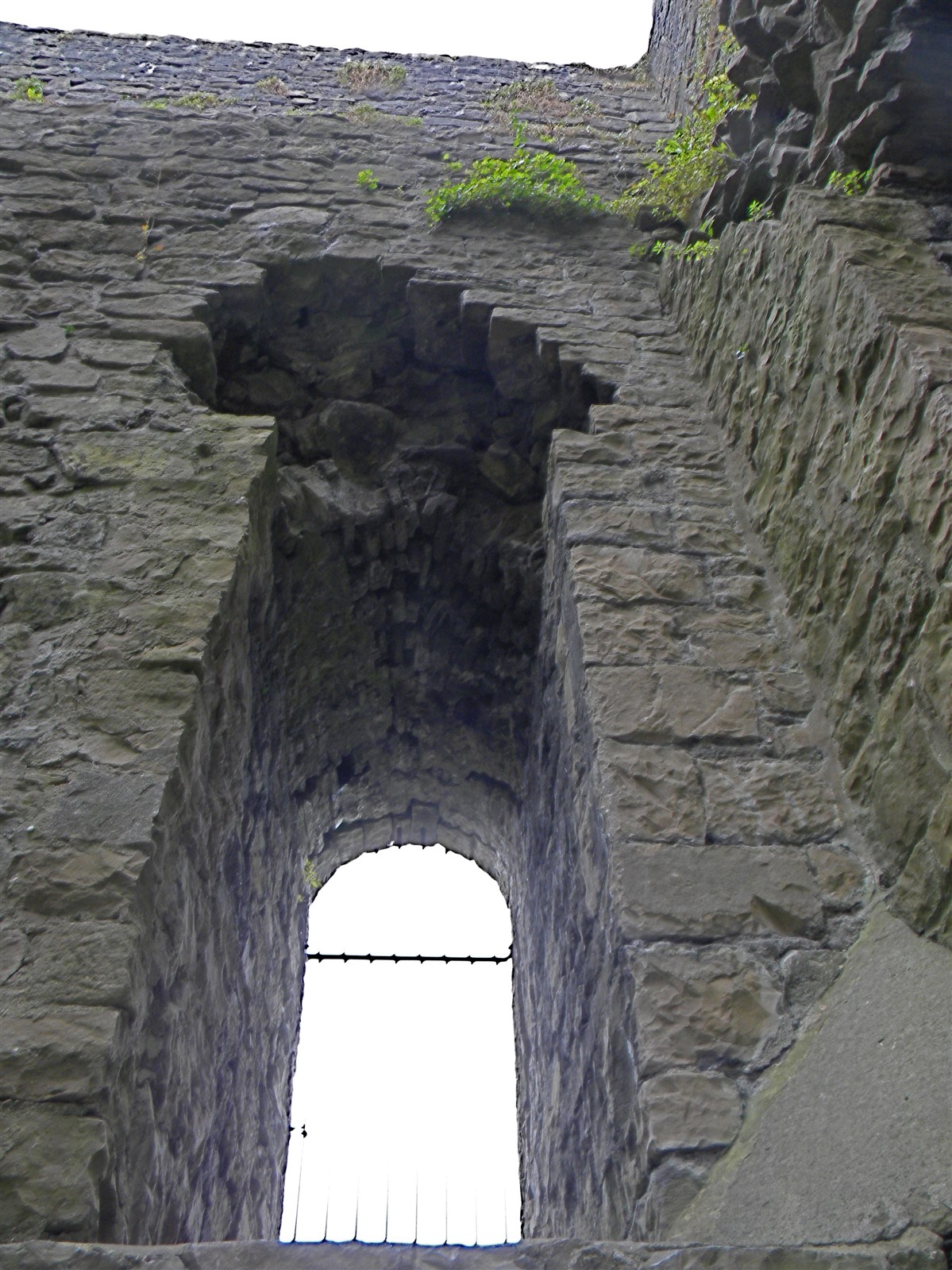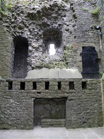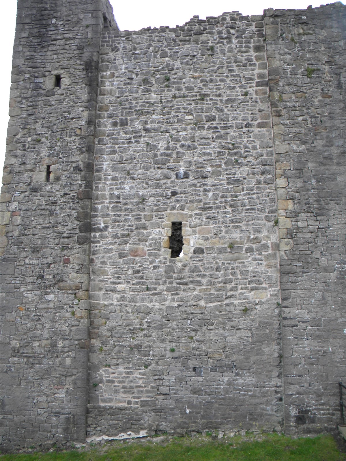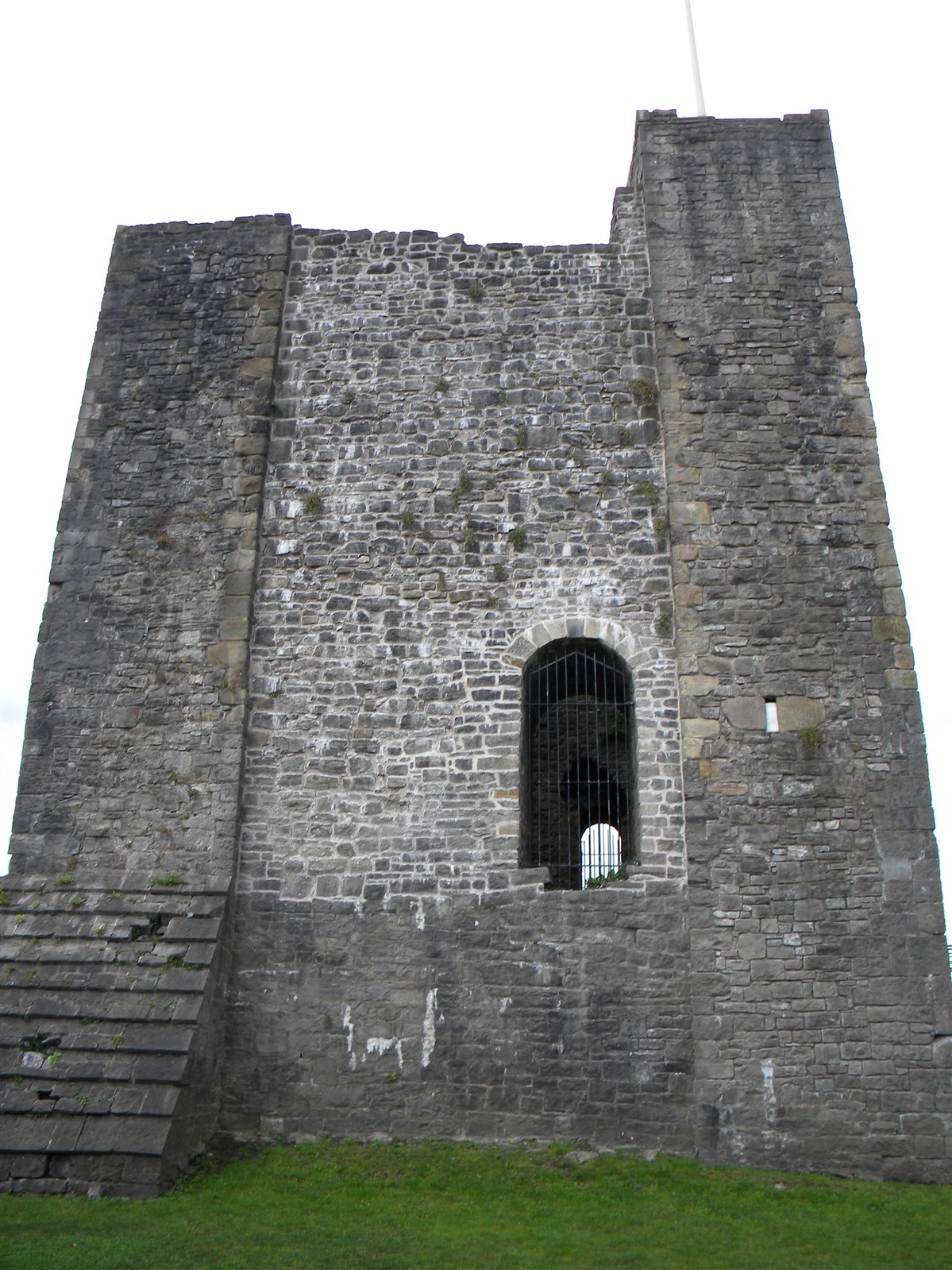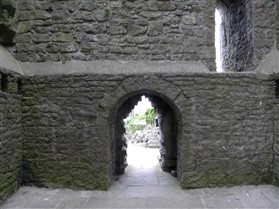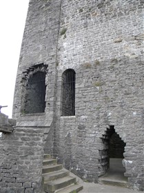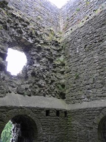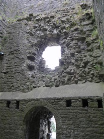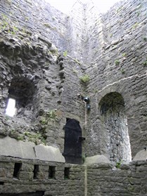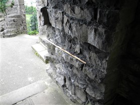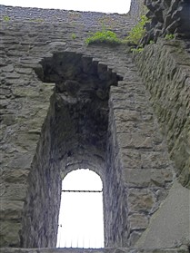 The keep is of limestone rubble with yellow ashlar dressings with wide pilaster buttresses enclosing the angles. Later extensions have been made to those to the east and south. The basement is lit by loops in round headed recesses, one in each wall, except the north east which lay beneath the entrance stair. The entrance is a plain round headed arch near the north end of the north east wall. A smaller door opposite near the west end of the west wall gave access to a bridge to the rubble curtain wall. The first floor rested on an offset, with square headed loops in round headed recesses in the north west and south east walls. The former is flanked by a round headed doorway leading to a barrel vaulted mural chamber in the west angle and a square headed doorway to the spiral staircase in the north angle which rises to the plain upper floor, again set back. The layout consists of an outer bailey, an inner bailey and the keep with its curtain wall and gatehouse (nothing now remains). This was a square structure of two storeys. A chapel was situated at the south end of the inner bailey, 52ft long and 20ft wide. (Lancashire County Council)