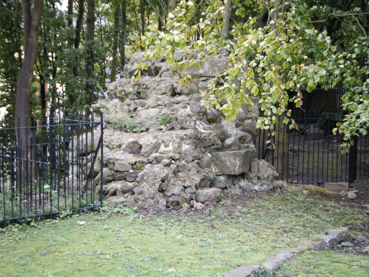 The Wery Wall is a surviving fragment of Roman walling on the east slope of Castle Hill adjacent to the rear of Mitre House. It measures 4.0m by 3.0m by 3.0m high and is situated on a very steep bank running north south. Only the rubble core of the wall remains, with no facing stones. Historical documents suggest that there was considerably more of this wall in existence in the 18th century, but its full course cannot now be traced. The remains represent a section of a bastion of the last Roman fort on the site, which probably dates to the fourth century.