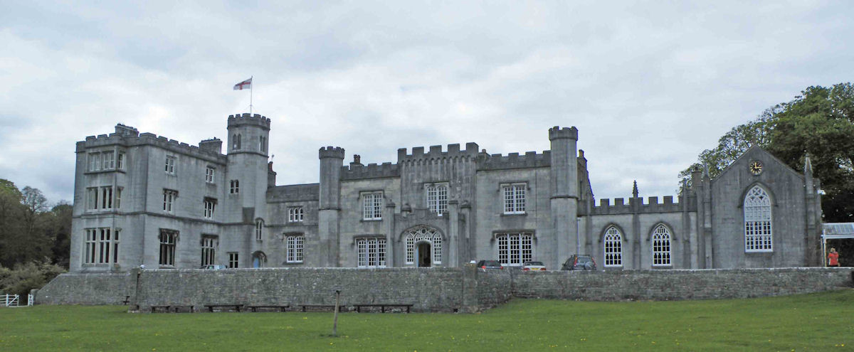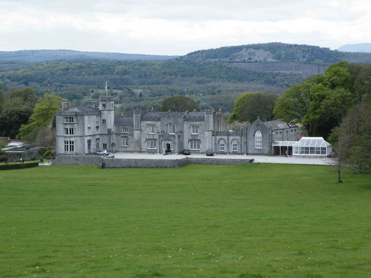 Country House, 1765, probably by J. Hird, with earlier remains. Gothic south-east front early C19th, possibly by Thomas Harrison. Tower at west end of the facade 1870 by Paley and Austin. Facade of limestone ashlar. Rear roughcast rubble with sandstone dressings. Slate roof. Central block of 2 storeys and 3 bays, battlemented with octagonal corner turrets. The central bay projects with a one-storey battlemented porch having clasping buttresses with ogee caps. The moulded doorway with 4 centred head is set within a wider chamfered 4-centred opening with tracery. Windows are chamfered with mullions and hood moulds, of 3 lights on the ground floor and 2 on the 1 st. The lights have 4-centred heads, except for the outer ones on the 1 st floor, and have sashes with glazing bars. Those to the porch have elaborate tracery in their heads. To the right is a single-storey 2-bay link with battlements and pinnacles. The 1 st bay has a window with tracery, the 2nd window being blank with painted tracery. The right-hand pavilion appears to be a chapel, with pinnacled buttresses, a window with panelled tracery, and a cross on the gable apex, but is in fact the stable. At the far right is a glass conservatory. At the left is a 2-storey link to the 3-storey battlemented tower by Paley and Austin, with a 4-storey turret in the angle. The tower has mullioned windows of various descriptions and a canted bay window to the south-east wall