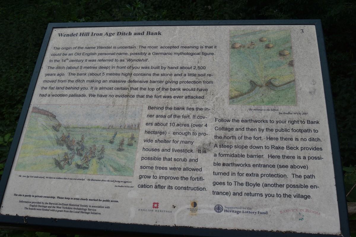 Barwick in Elmet lies between the rivers Wharfe and Aire, north of the Aire's confluence with the River Calder. The monument comprises two areas which include the remains of a large Iron Age univallate hillfort and a twelfth century motte and bailey castle. The Iron Age hillfort enclosed the tops of two adjacent hills, Wendel Hill and Hall Tower Hill. The motte and bailey castle, though lying inside the hillfort, occupied Hall Tower Hill only. The substantial remains of the bank and ditch that enclosed the hillfort survive in a well-preserved state round Wendel Hill, where it measures up to 4.5m from base to summit, and also to the south-west of the motte on Hall Tower Hill, though here it was modified in the twelfth century to form part of the medieval defences. In addition, the south circuit of this bank and ditch, where it circled round the south side of Hall Tower Hill and proceeded north-east to join the circuit round Wendel Hill, was found when houses were built next to the motte in the 1960s. The remains of a massive inturned entrance are visible in the northern circuit, on the north-west side of Wendel Hill, and much of the interior of the hillfort is preserved in the open areas behind the houses and premises along The Boyle. Here the remains of a variety of associated features will survive below ground and will include such features as the post-holes and trenches of buildings, storage pits and hearths, and a variety of small finds indicative of the occupations of people living within the hillfort. Coins dating to the second century BC and first century AD have already been recovered. The motte and bailey castle was built at the southern end of the hillfort and comprised the motte, which stands c.15m high and is surrounded by a deep ditch c.15m wide, and the bailey which extended to the north and east