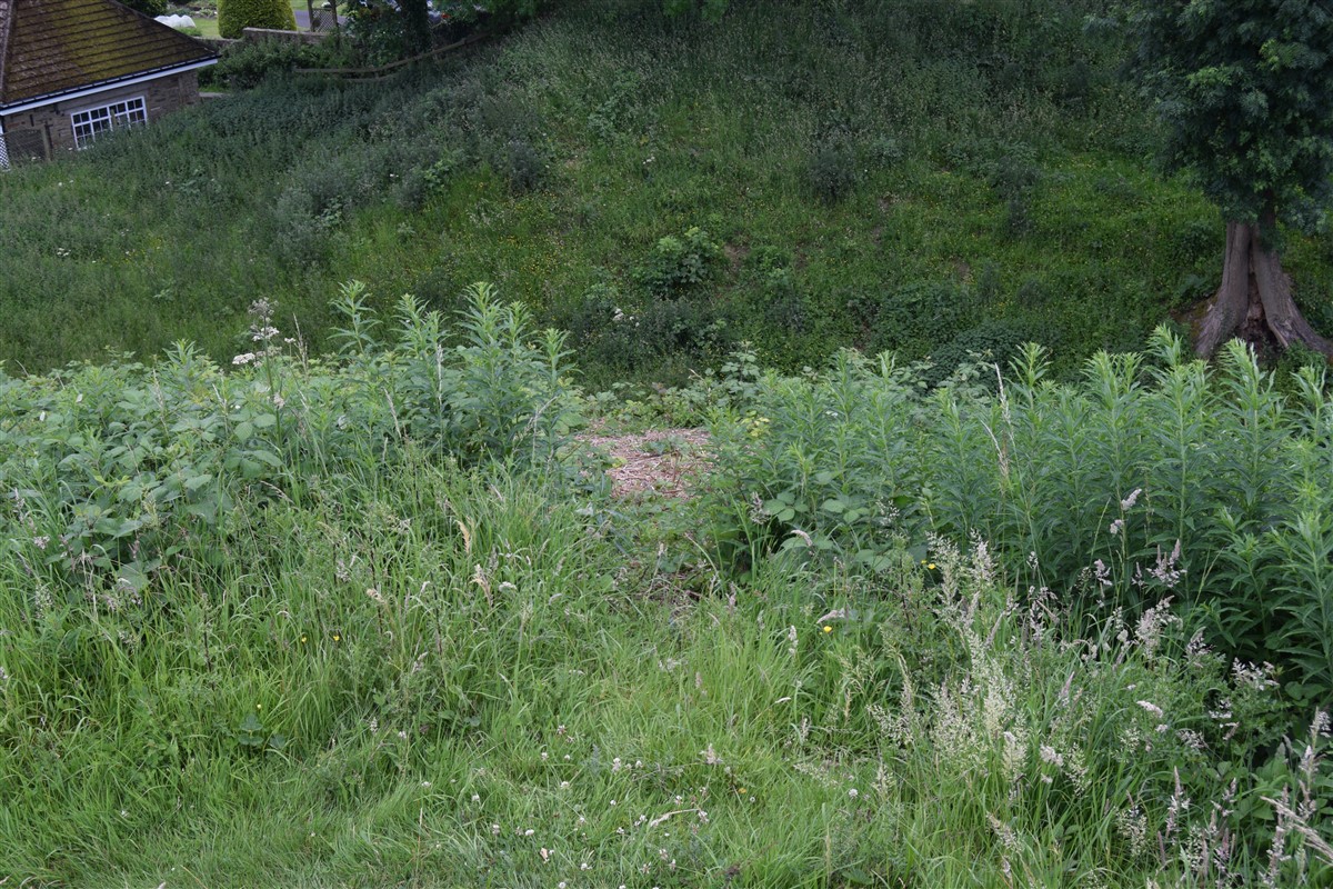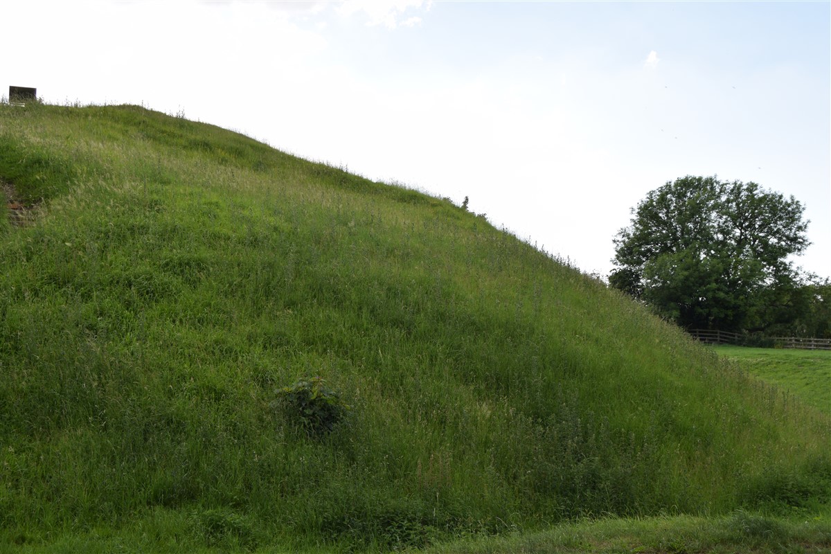 Dr David Mercer pointed out to Gatehouse that this motte has a distinct change of slope halfway up. This is suggestive of this mound starting out as a ringwork and was then later in-filled and raised into a tall conical motte.