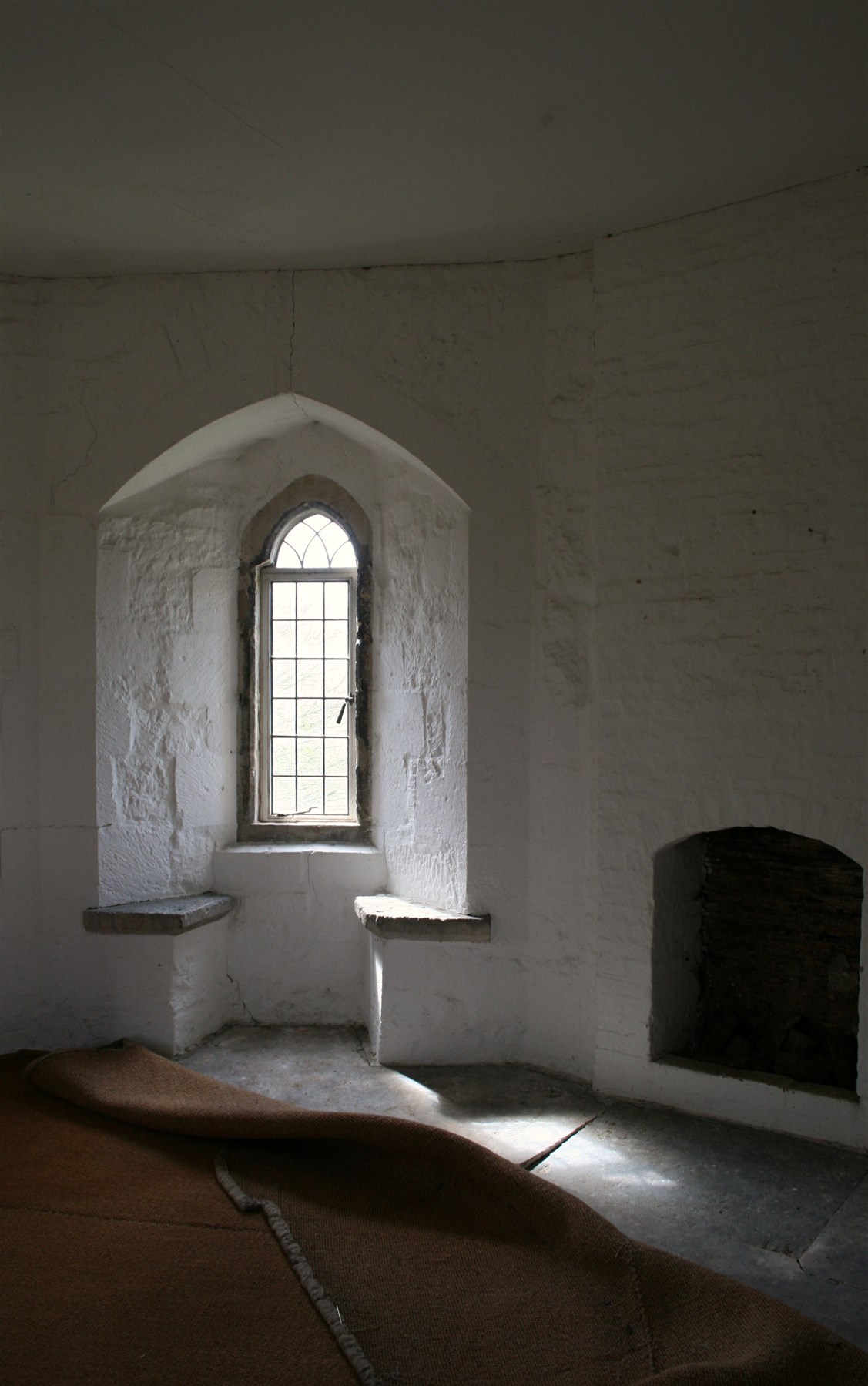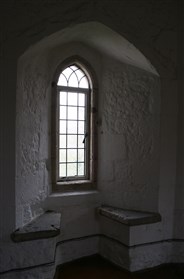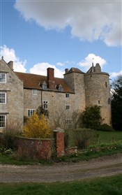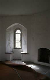The SE tower with 3 storeys and a conical roof, and the ground floors of the N.E. and S.W. towers. Attached to the SE tower is the south front extended by an Elizabethan wing before 1595, part of which may be the original curtain wall. More curtain wall is attached to the SW tower base.