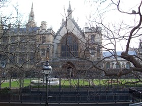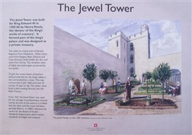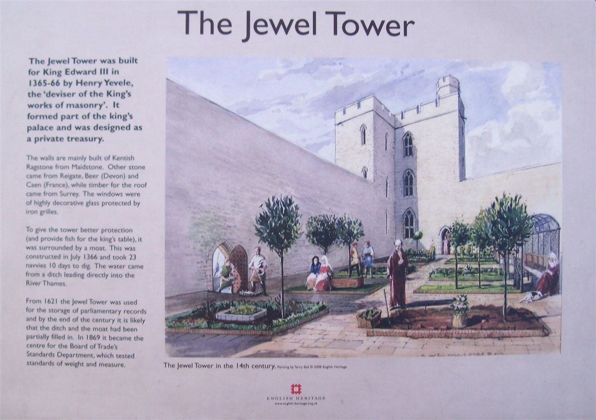 The Palace at Westminster is sited on Thorney Island and was built close to the Abbey of Westminster from about 1040 onwards. For over 500 years it remained the principal palace of the sovereign, and housed the principal Courts of Justice, the Exchequer, and administrative offices of the kingdom. The Jewel Tower was the Royal Treasure House, later repository, forming the South-West corner of the former Privy Palace of Westminster. 1364-6 by Henry Yevele with windows and parapets renewed in 1718-9. L-plan tower with North polygonal stair-turret. The Jewel Tower was used as a treasury from 1366. By the end of Henry VIII's reign, it had been replaced as a treasury. Following war damage, it was restored and opened to the public, its moat being re-excavated. The quay retaining walls of the dock which antedates the Jewel Tower were excavated in 1963-4 and now form the retaining walls of the moat.