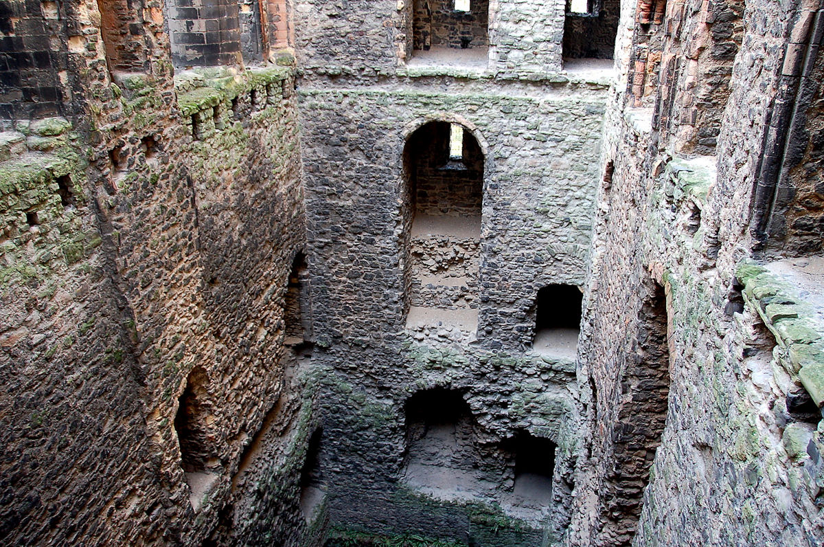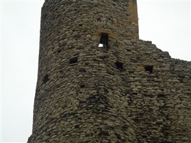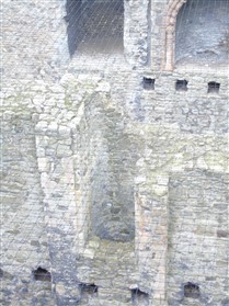 It is important to realise the Great Tower was built as a palace for the Archbishop (or even as a joint palace for the archbishop and the king), a place for him to show his might as a great secular lord, as well as a religious leader, and to receive homage from his numerous retainers, tenants and others. It was no more designed or built to be a place of last resort in a siege than the grain silos of Stalingrad in 1942/3. As a massive and strongly built tower it could be used as a last resort, as it was in 1215, and as an important political building it would be a target for attack. However explanations of the architectural features, such as the forebuilding, in terms of being designed to resist a siege or attack are misleading and only obscure the way the tower was actually used. The castle itself (the whole structure, within the curtain wall) did, of course, have a military function as a secure base for a garrison and store although policing and administrative functions were the more regular aspect of the 'military' presence. The original timber castle is sometimes argued to have been nearby at Boley Hill, although the earthworks there possibly originated as a siege castle, and Jeremy Ashbee (2015) is of the opinion there was a C11 earthwork castle on the site of the later stone castle. The corner of the great tower undermined in the 1215 siege was replaced by a circular turret. This is normally suggested as being a specific design choice made for military reasons to lessen the risk of undermining. It should be noted this replacement is of poorer quality stone and shows much less skilled masonry work. It was a cheap repair and it may be the round form which, because of the lack of expenses ashlar corner quoins, was chosen as much for (or, indeed, only for) economic reasons as for any military concern