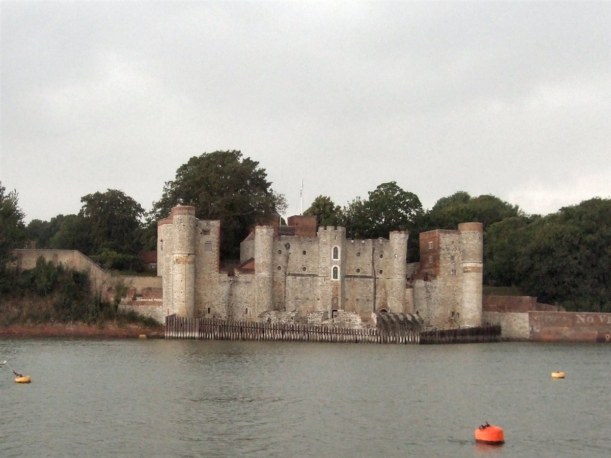 Fort. 1559-67 to designs by Sir Richard Lee, enlarged 1599-1601 to designs by Arthur Gregory and an Italian engineer surnamed Baptist. Converted into magazine 1668, Ordnance Laboratory 1827 and part of the Naval Armament Supply Department in the late C19. Coursed ragstone with some red brick heightening and patching. Rectangular main block with water bastion and river frontage belongs to Sir Richard Lee's design of 1559-67. Two riverside towers substantially rebuilt and gatehouse, curtain wall and moat added 1599-1601. River front height- ened, alterations to gatehouse and towers later in C17. Gatehouse: coursed coarse ragstone walls either side of entrance with cross-loops, one marked on lintel 'W. Webster XXIII Regt, 1787 May'. Coursed rubble gatehouse projecting from two wider taller rear towers, all brought up to greater height in C17 with double-splayed segment- headed stone-dressed gun-ports in top stage of sides of gatehouse. Wooden bell-cote over gatehouse with bell dated 1809. Recess immed- iately over gate-arch, perhaps for coat-of-arms. Round-arched inner gateway in line with inner tower walls with C20 balustrades on two floors over, following C18 configuration. Curtain wall: rebuilt after 1625. Coursed ragstone with red brick parapet and wooden stakes projecting over moat to north-west and south-west. Magazine: East side: Coursed ragstone with some red brick rebuilding. Main block in centre with north and south towers attached by lower walls at level of band on main block. Staked palisade projecting to east into River Medway in triangle full-width of block with inner gun-embrasured water bastion full width of magazine only. North-east and south-east towers: Rectangular with brick parapets and round stair-towers towards Medway. Various irregular loops and wooden mullioned windows. Magazine block: Platband at half-height and crenellated parapet. End projecting round towers and central projecting octagonal stair tower, all taller than block which has recessed ends behind shallow splayed side to centre. 4 oculi on two upper floors and 2 round-arched windows on stair-tower, all added before 1698. Various other loops. 3 round-arched doorways at water bastion level, one in centre to wooden spiral stair, two outer doorways to small side compartments under magazine. At the height of its use in the early C17 the Castle was equipped with 'a demi-cannon, 7 culverin, 5 demi-culverin, a minion, a falcon, a saker and 4 fowlers with 2 chambers apiece'. (Listed Building Report)