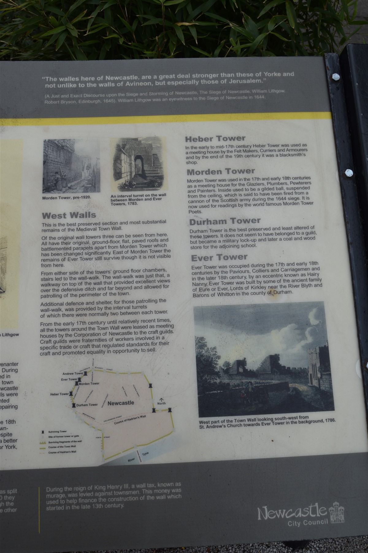Alternative Names | Ever Tower; Morden Tower; Heber Tower; Wall Knoll Tower; Durham Tower; Corner Tower; Gunner Tower; Austin Tower; Carliol Tower; Denton Tower; Fickett Tower; Monboucher Tower; Pink Tower; Stank Tower; Water Tower; West Spittal Tower; White Friar Tower; New Gate; Pandon Gate; Pilgrim Gate; Sand Gate; West Gate; Close Gate |