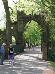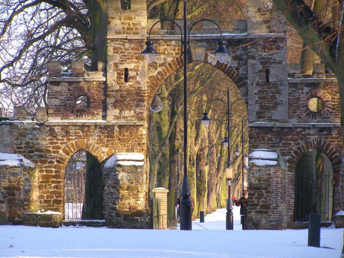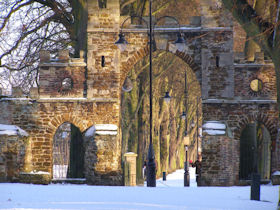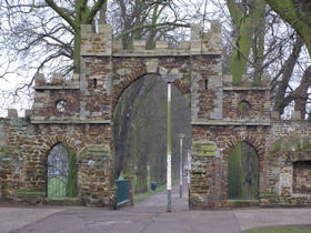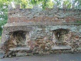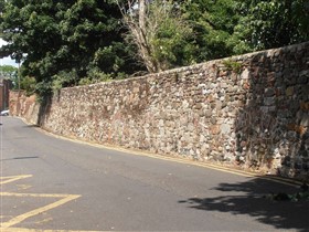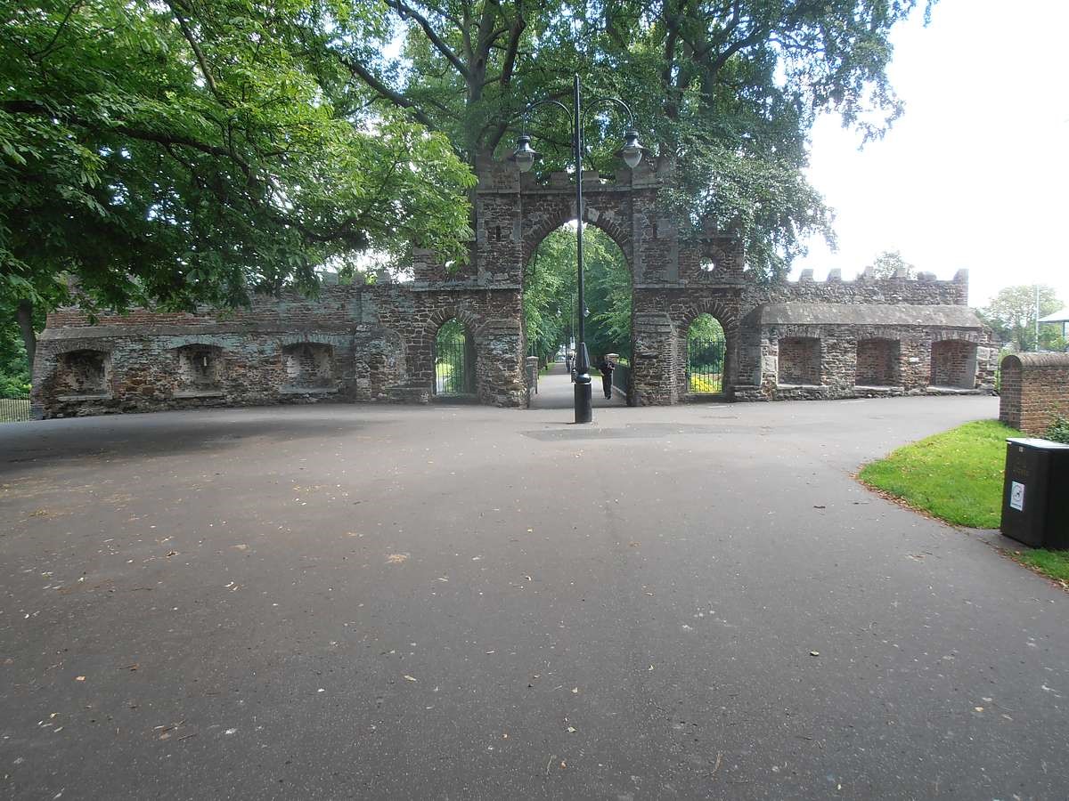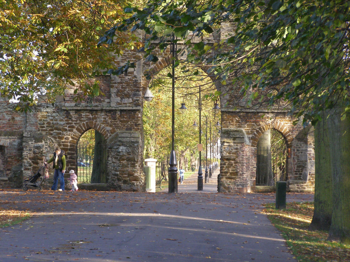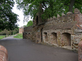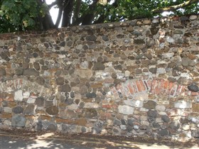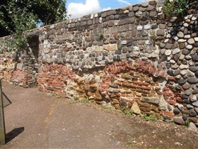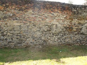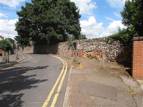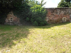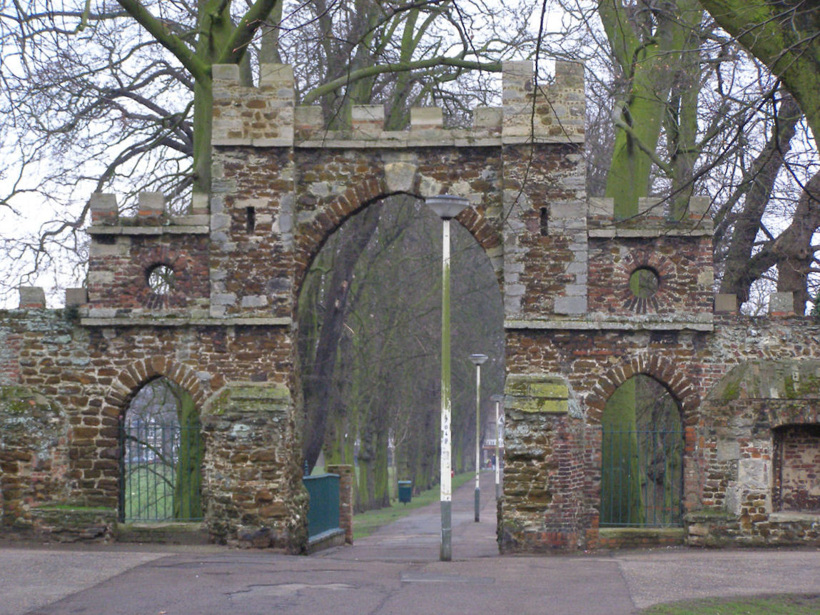 The town defences are based on a series of earthwork banks that were formed in the saltmarsh that once surrounded the town, and the line of the defences to the east follows the line of an old sea bank. Stone walls were constructed in the late 13th and early 14th centuries. The walls were strengthened in the 16th century, and St Ann's Fort was constructed in 1570. Only a few fragmentary remains of the fort survive. The defences were replanned during the Civil War but construction was interrupted by a siege laid by Parliamentary troops and the earthworks were left unfinished until 1645. The line of the defences can be followed in modern streets and property boundaries, and the Civil War defences were closely based on the line of the medieval defences. In the 18th century several sections of the walls were demolished, but some stretches of wall are still standing, as well as the town gates, including the well-known South Gate. (Norfolk HER)
