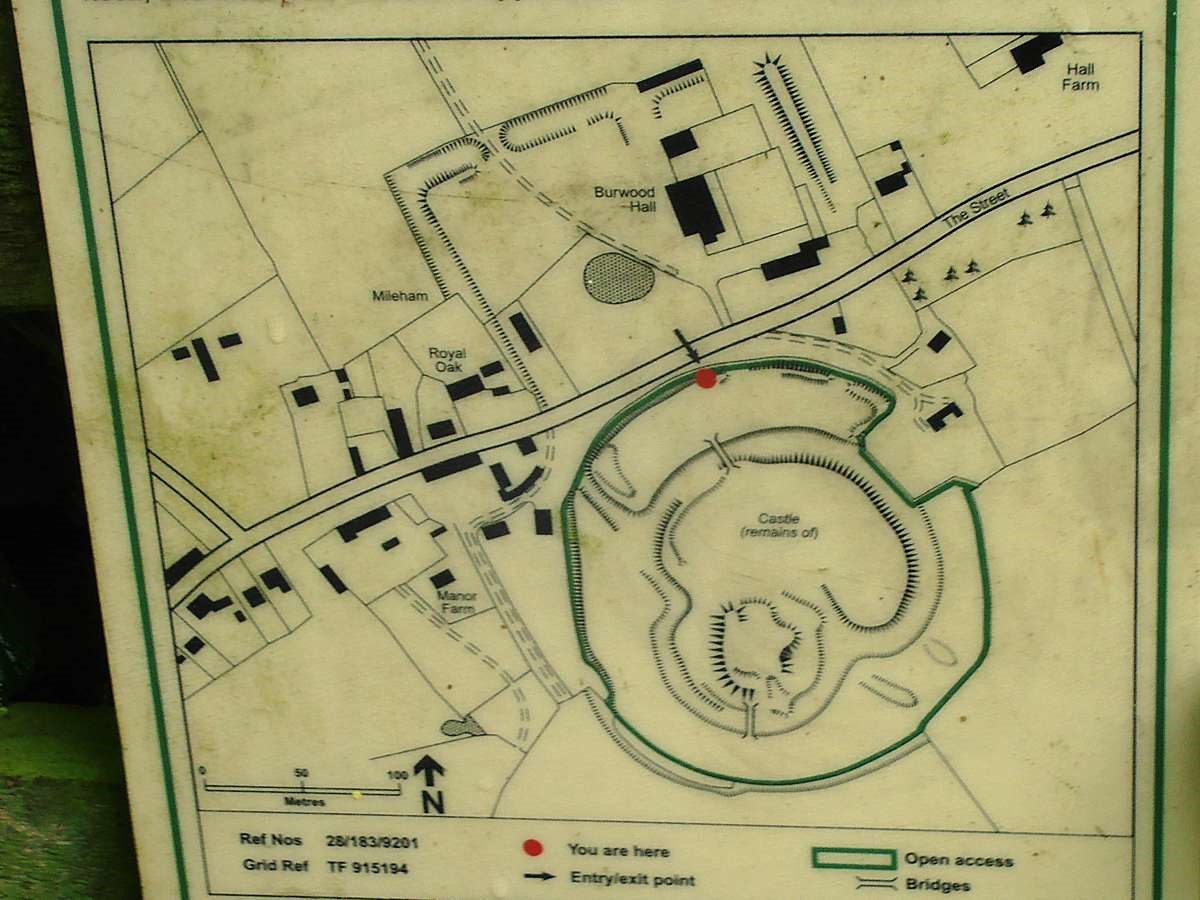 Mileham and Burghwood are separately listed by Harvey. Burghwood was the name of a manor in Mileham and this may be a duplication on his part, but the tenurial history of Mileham is somewhat complex and another small but strong moated site exists NE of the castle at Giants Moat.